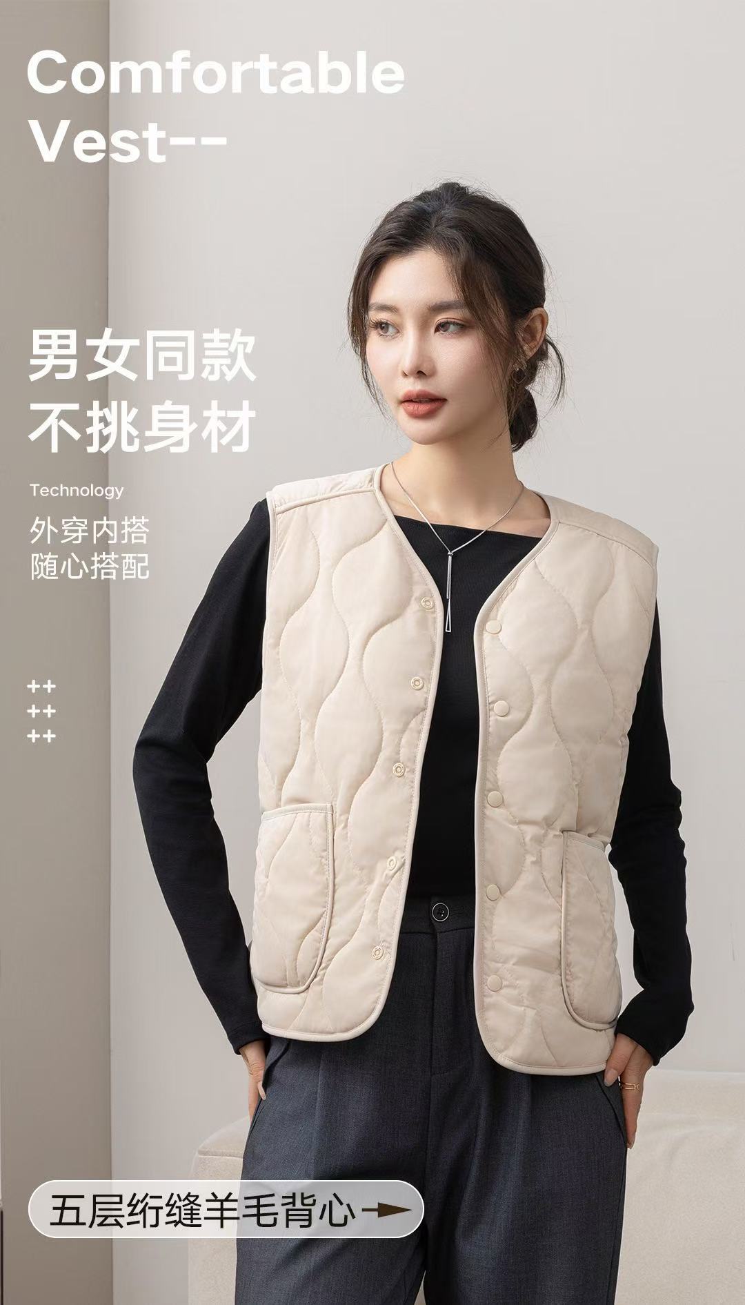 【99元/任选2件】慕莎雪棉羊毛马甲 女士秋冬保暖背心 加厚羊毛马甲上衣