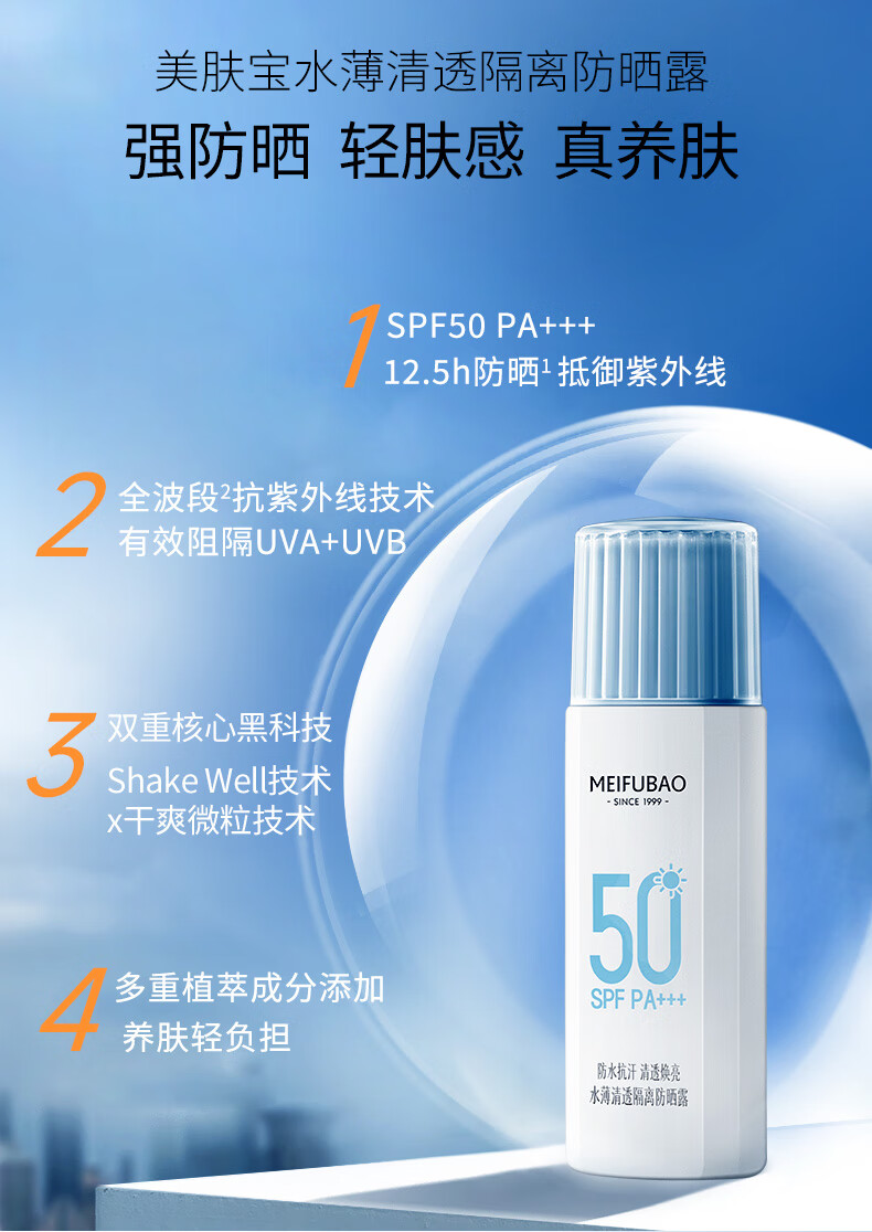 美肤宝水薄清透隔离防晒露45ml SPF50 PA+++