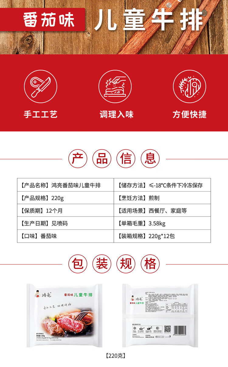 鸿亮番茄味儿童牛排220g(新老包装随机发货)