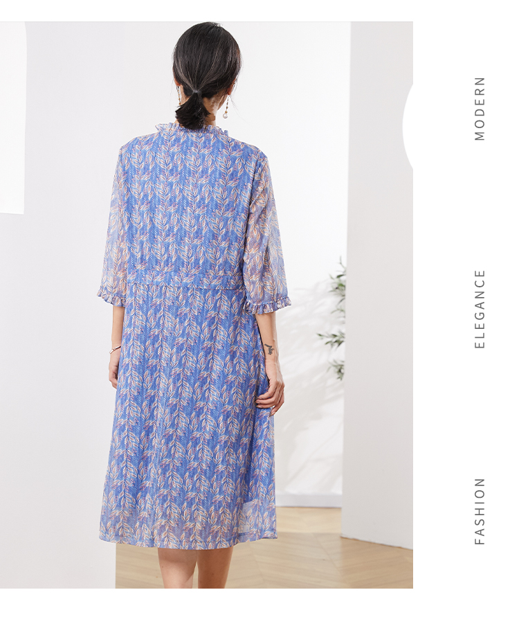 佐尔美夏季新款 桑蚕丝真丝提花缎中袖连衣裙女E22LS54