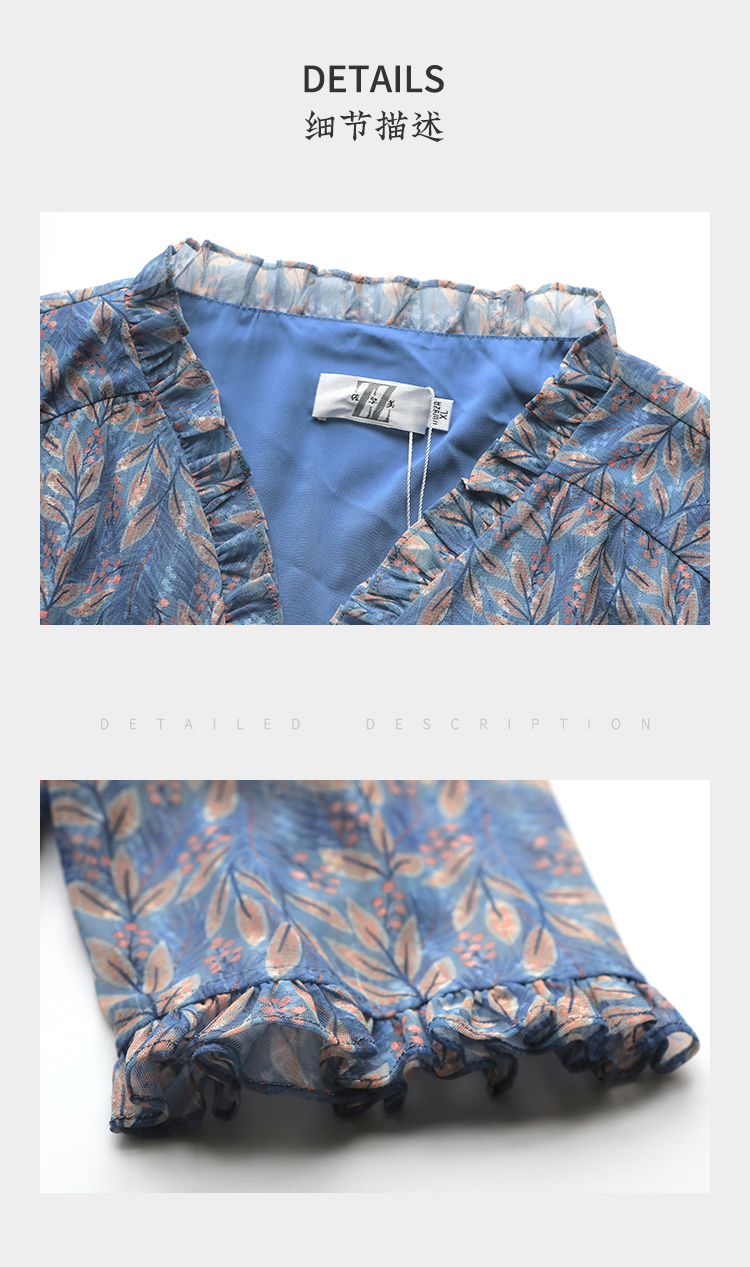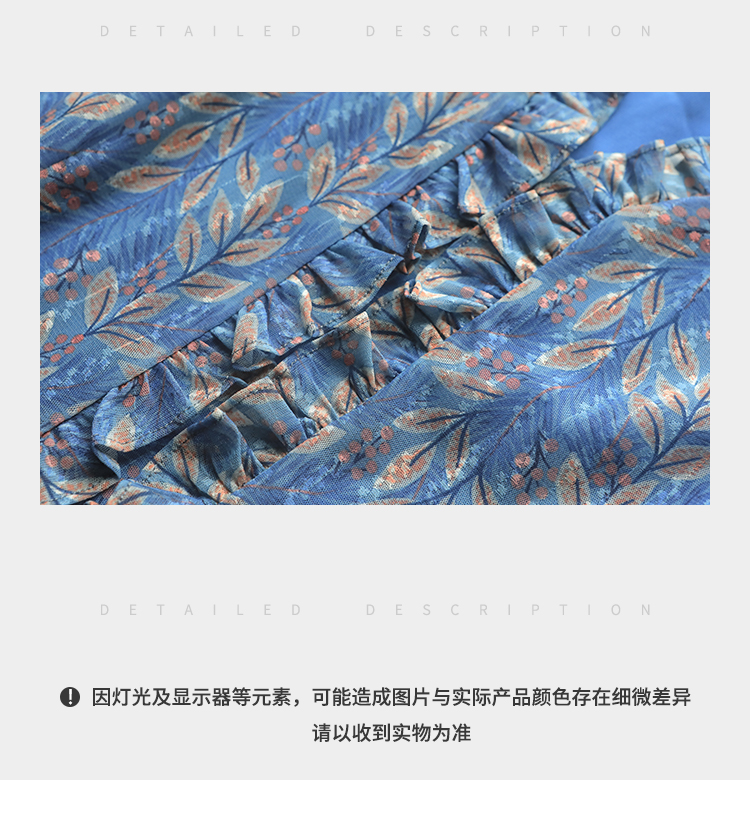 佐尔美秋季新款 时尚碎花网纱连衣裙女E21LL05
