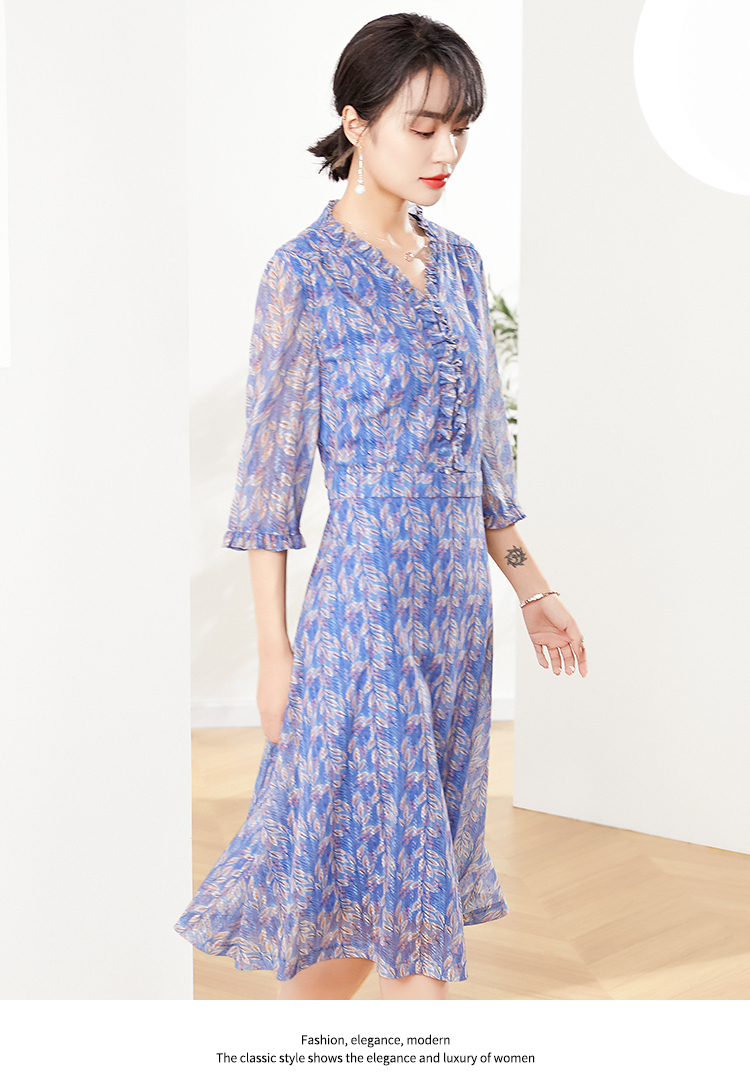 秋季新款气质优雅减龄显瘦蕾丝七分袖连衣裙E93LL22