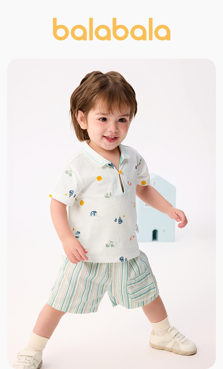 巴拉巴拉男童短袖套装婴儿夏装2025新款两件套时尚潮