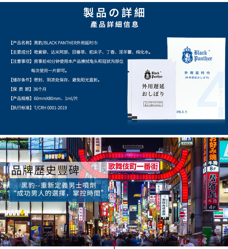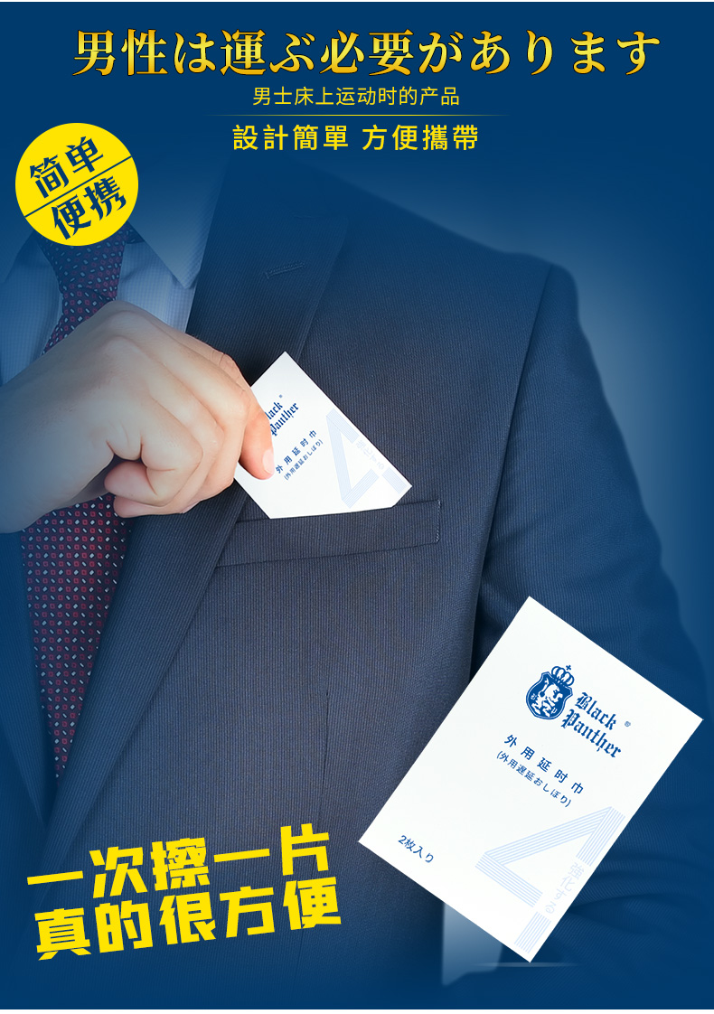 Black Panther日本黑豹 延时湿巾中式延时喷雾外用延时喷剂伴侣夫妻房事成人情趣性用品男 黑豹四代湿巾2片装