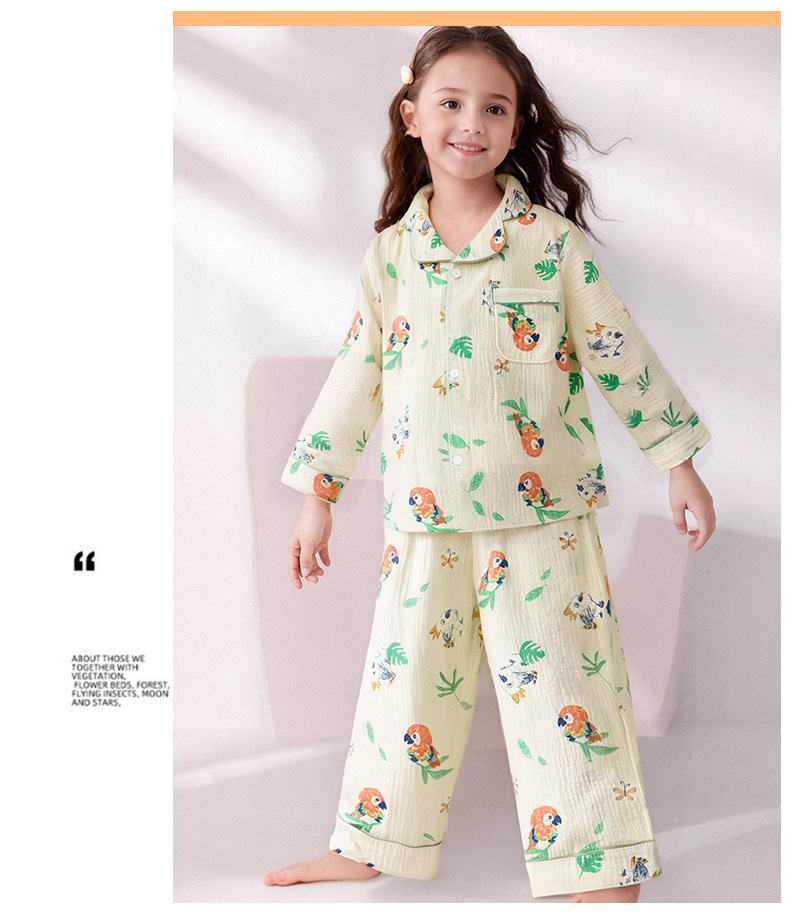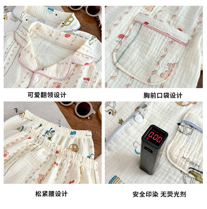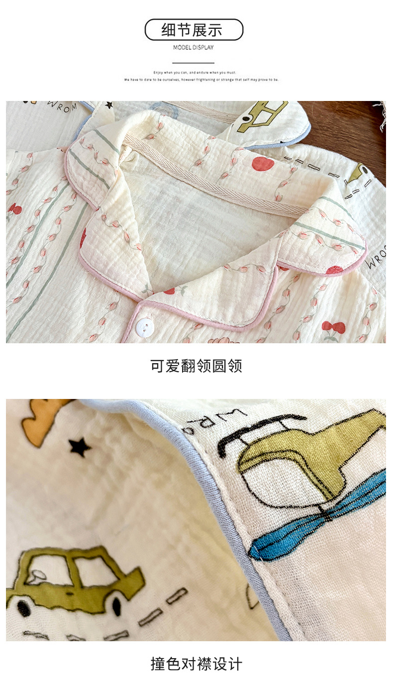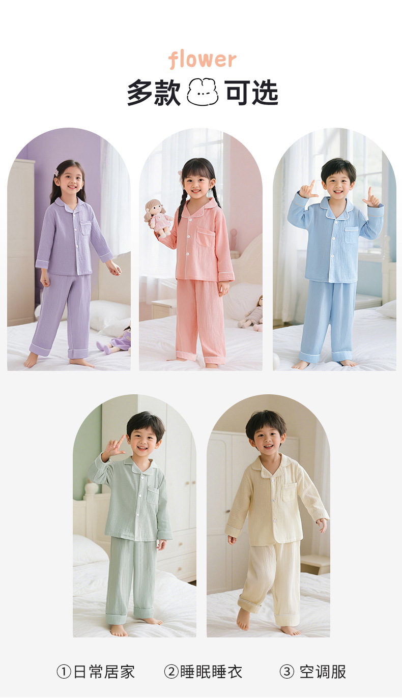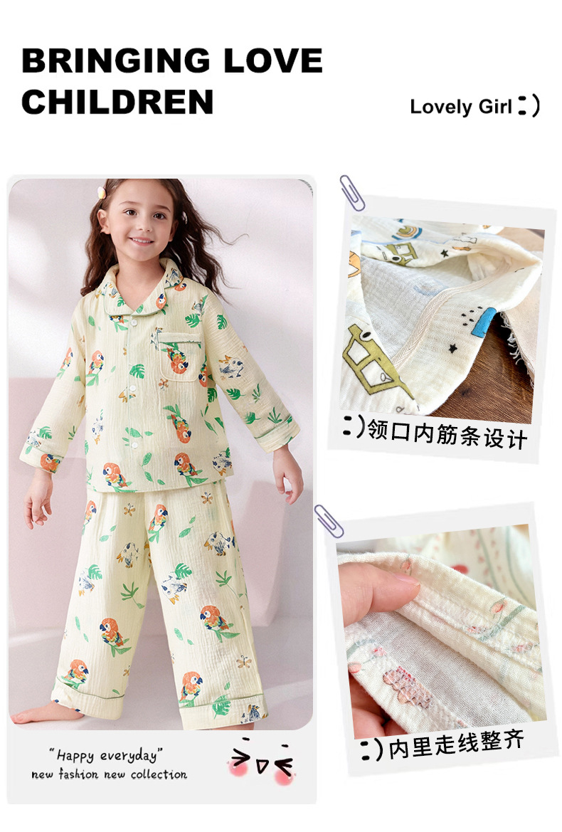 【49.9元/件起】儿童春季双层棉纱布家居服透气男童女童印花纯色