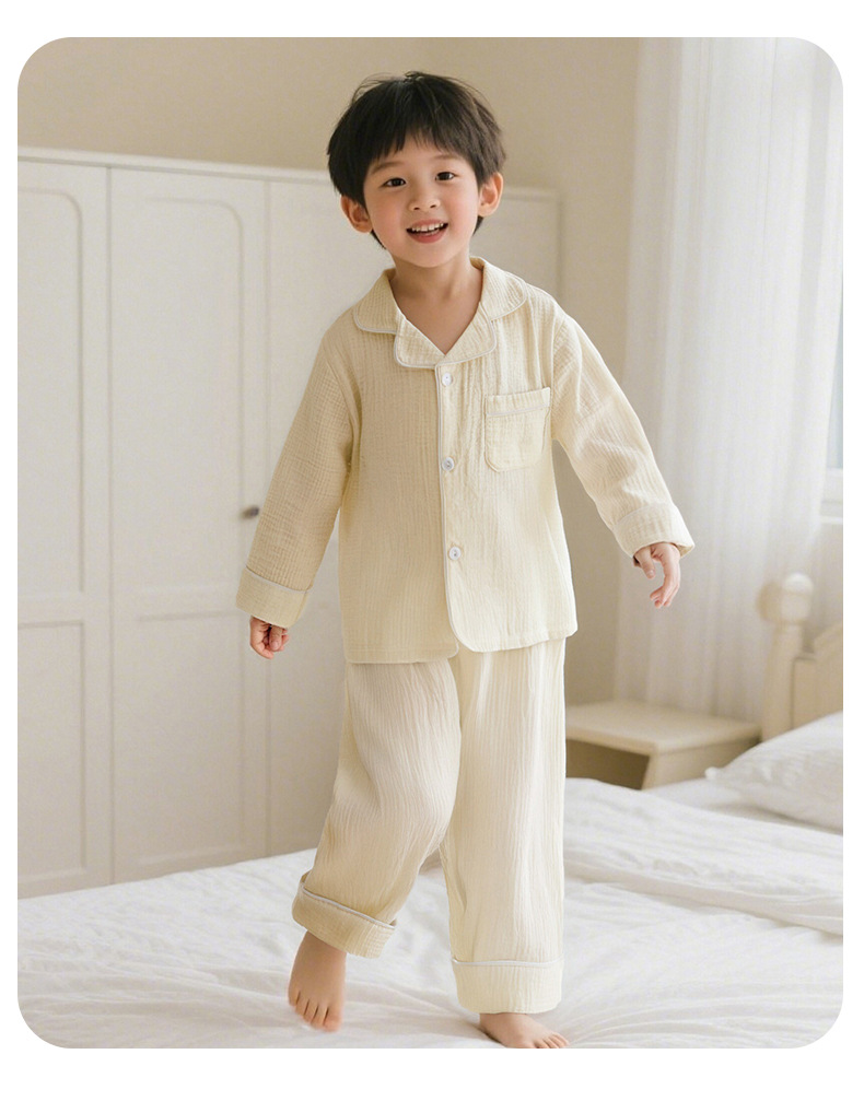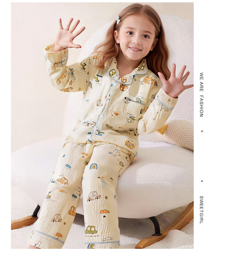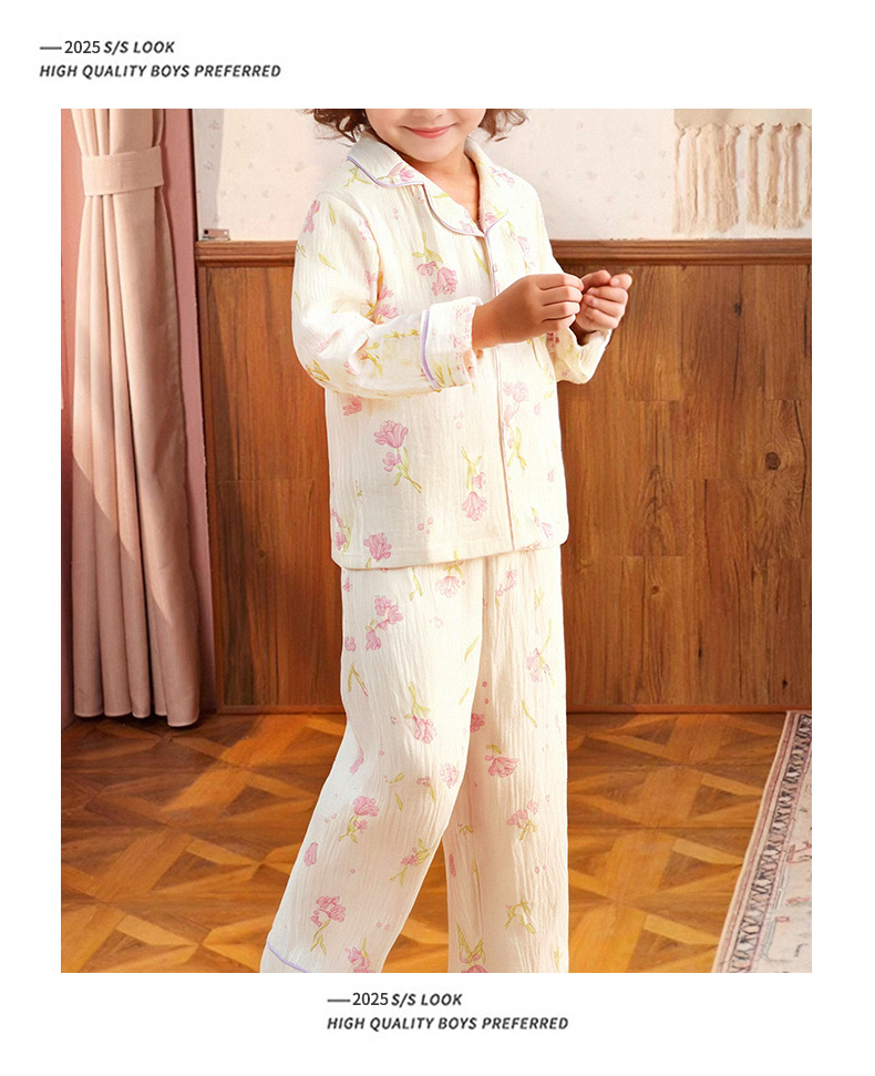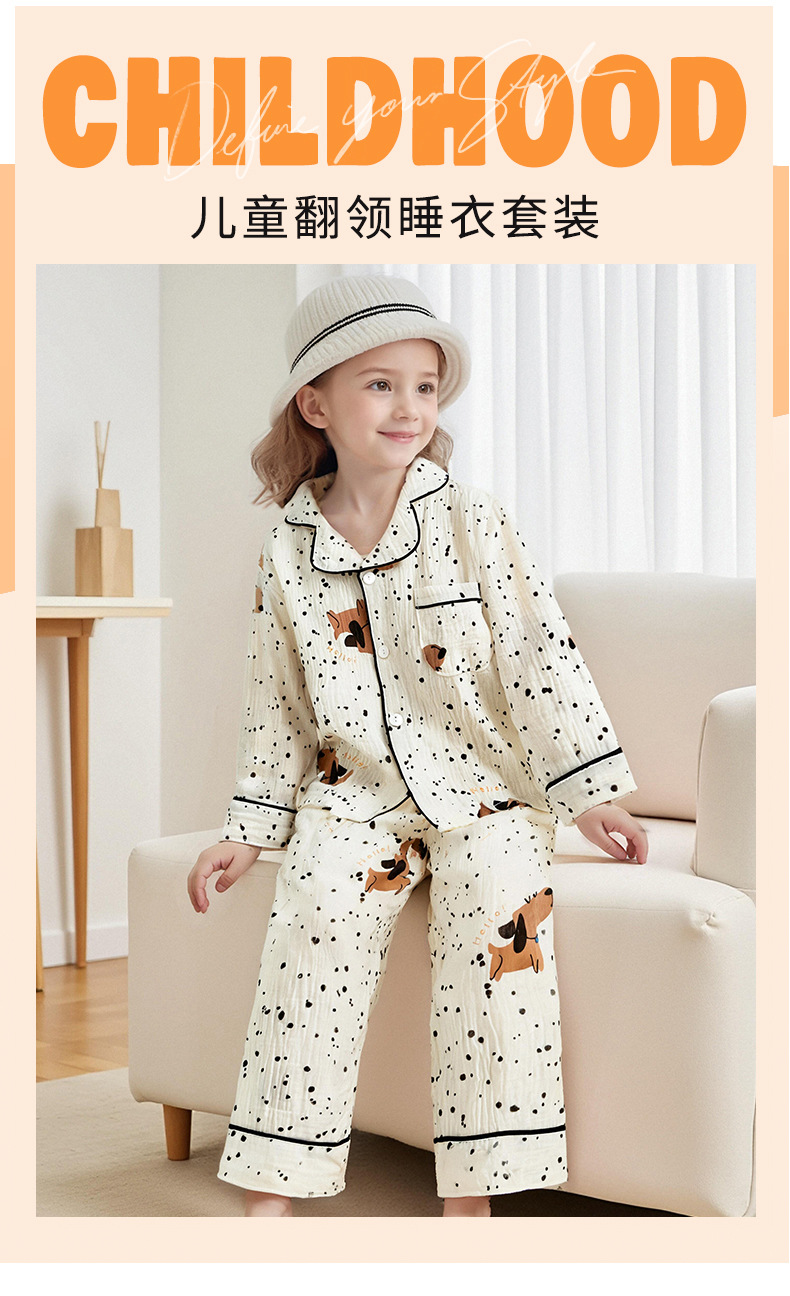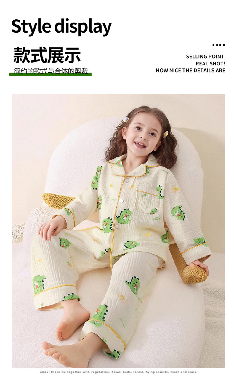 【49.9元/件起】儿童春季双层棉纱布家居服透气男童女童印花纯色