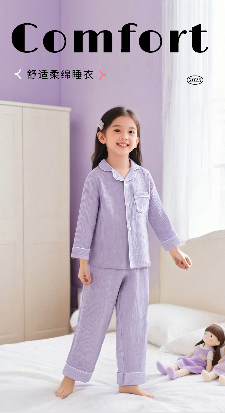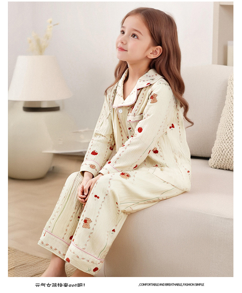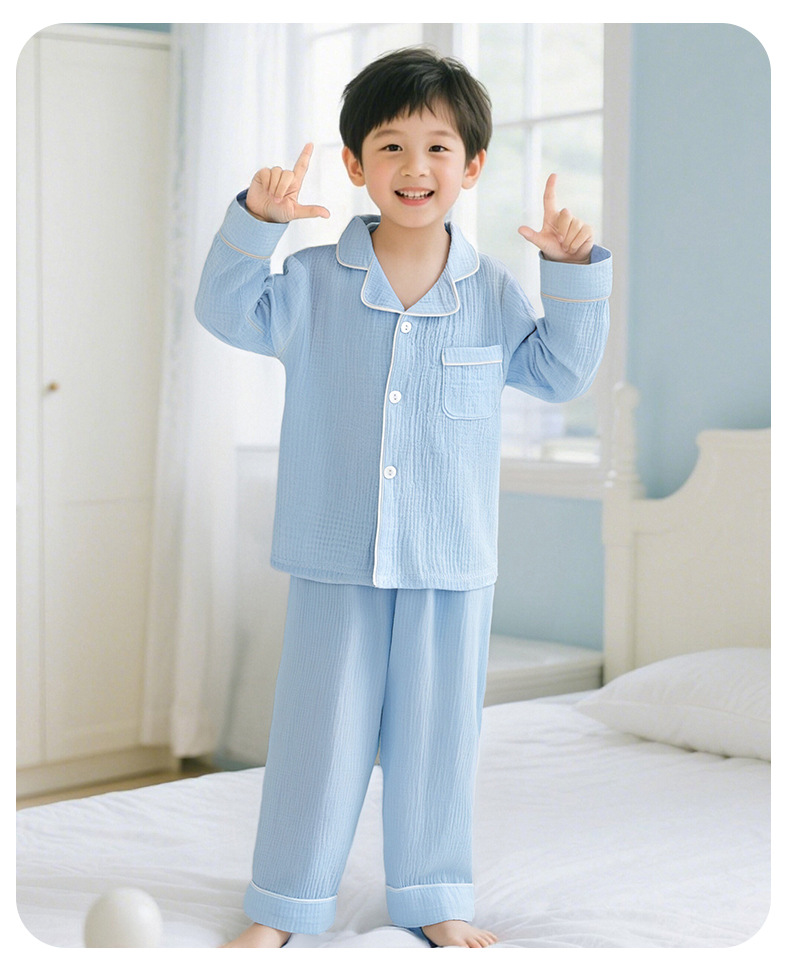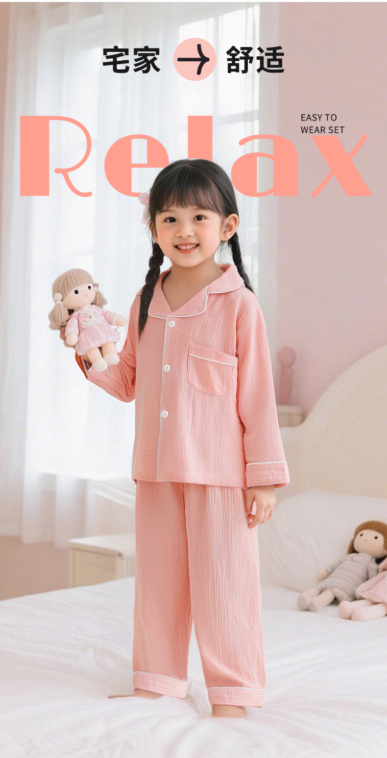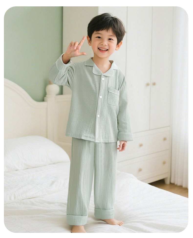 【49.9元/件起】儿童春季双层棉纱布家居服透气男童女童印花纯色
