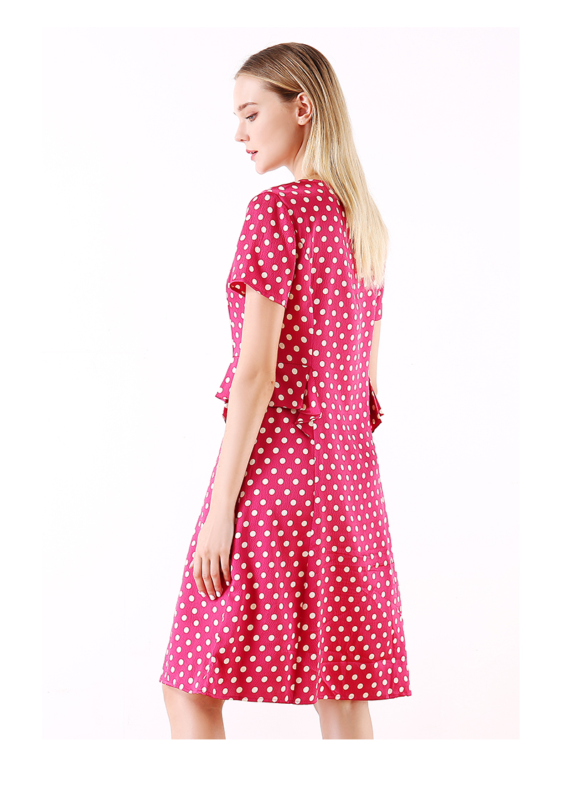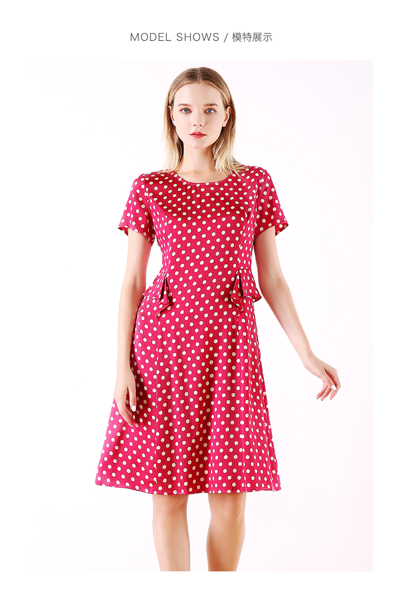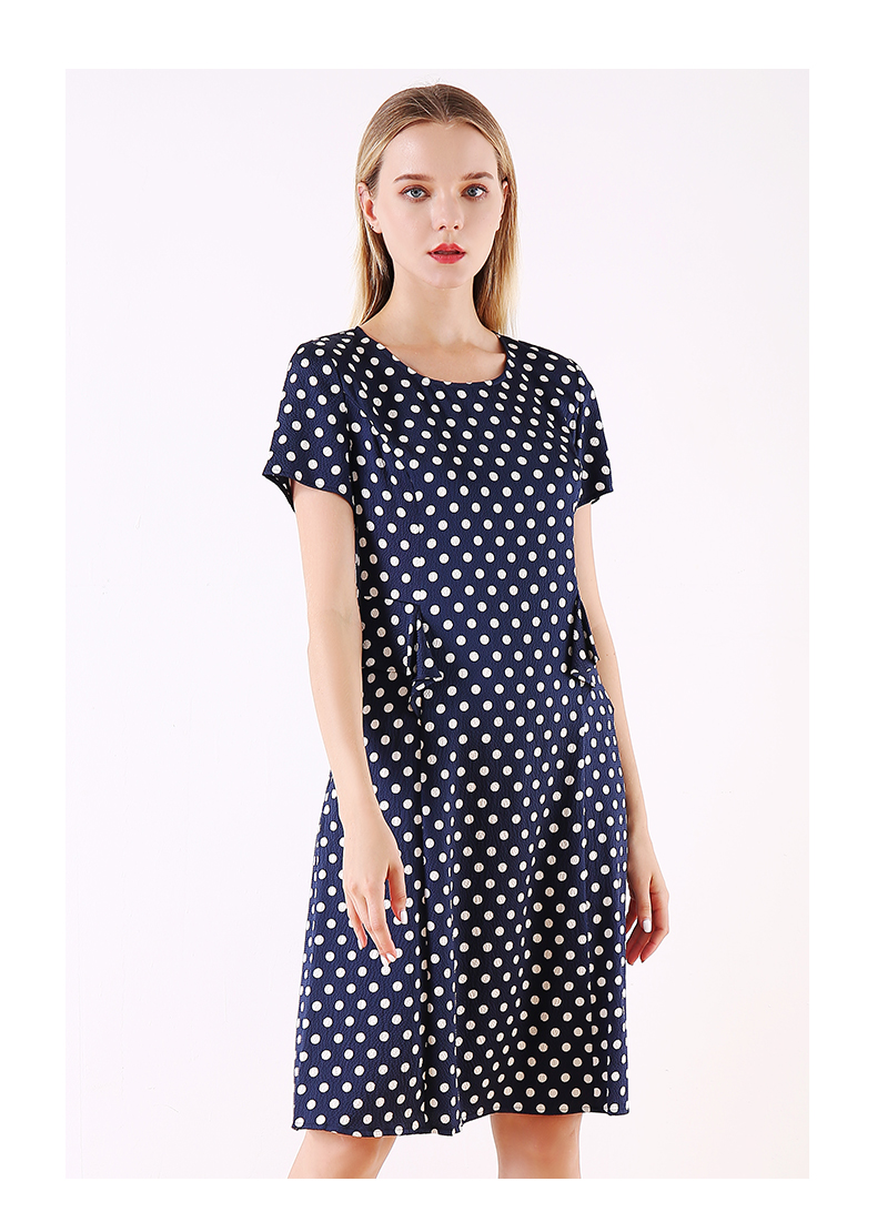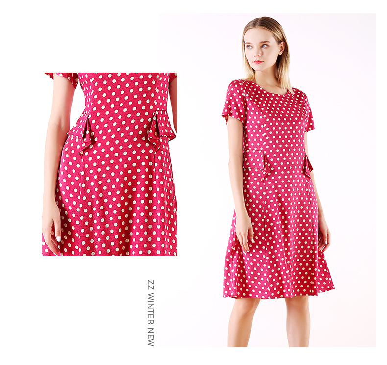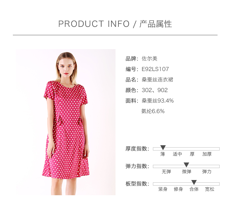 佐尔美夏季新款领短袖波点真丝桑蚕丝连衣裙E92LS107