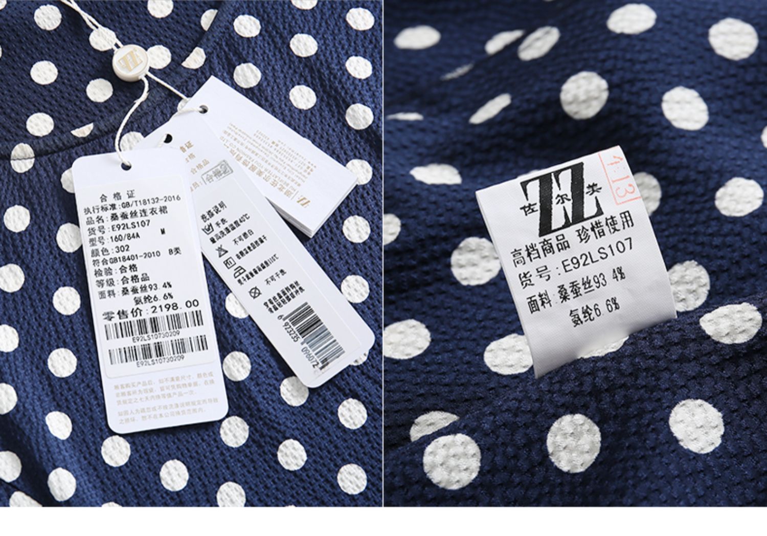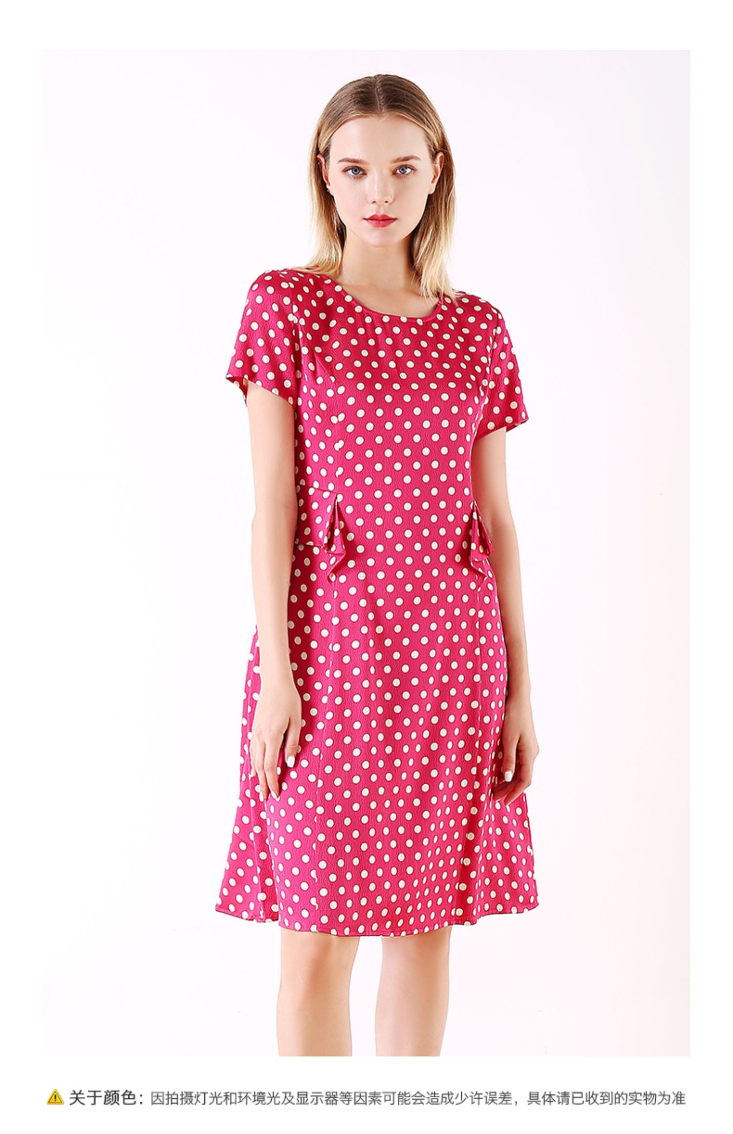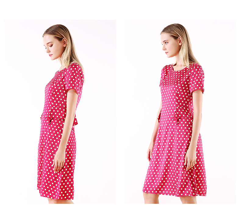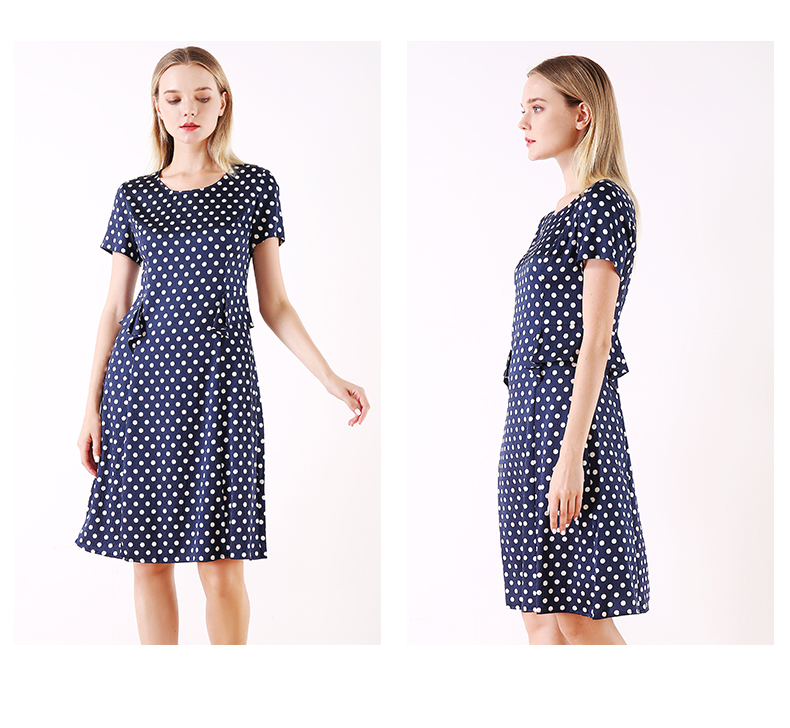 佐尔美夏季新款领短袖波点真丝桑蚕丝连衣裙E92LS107