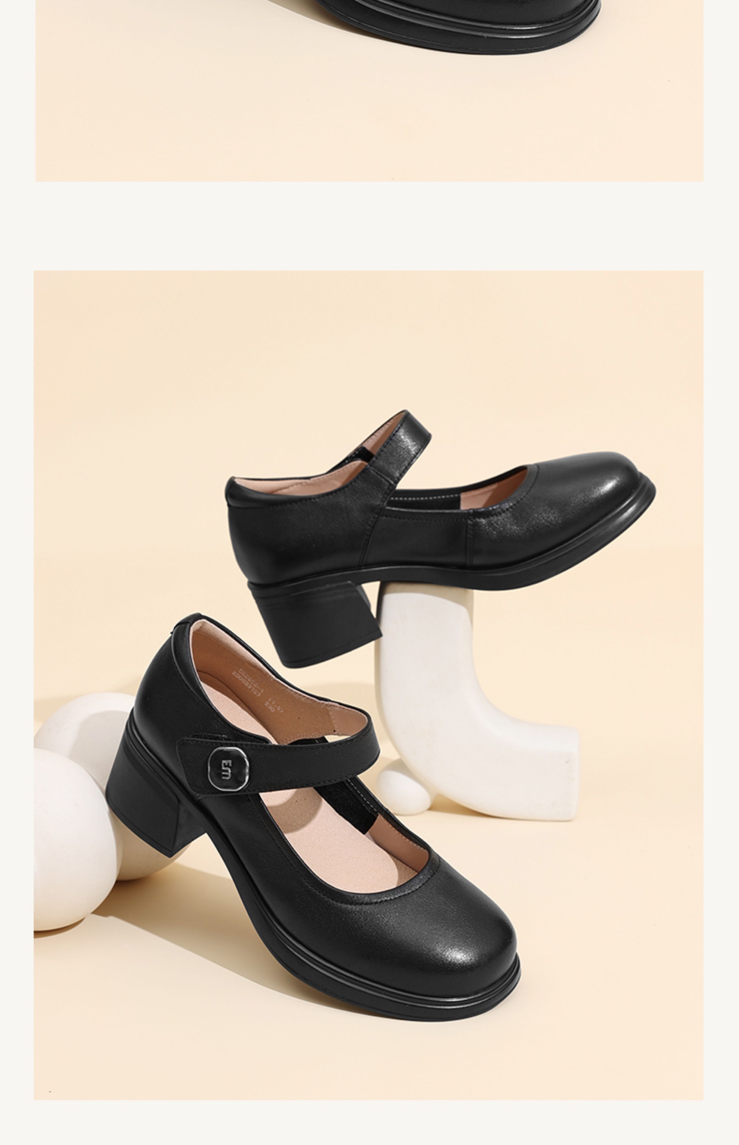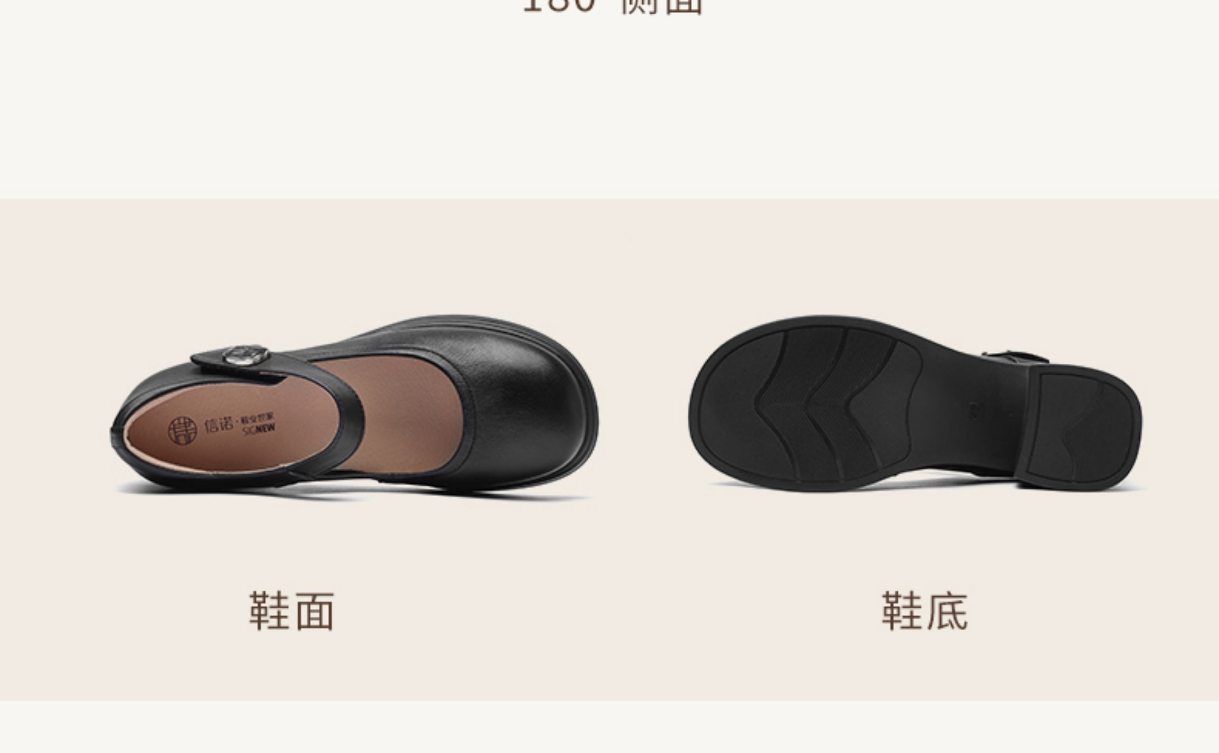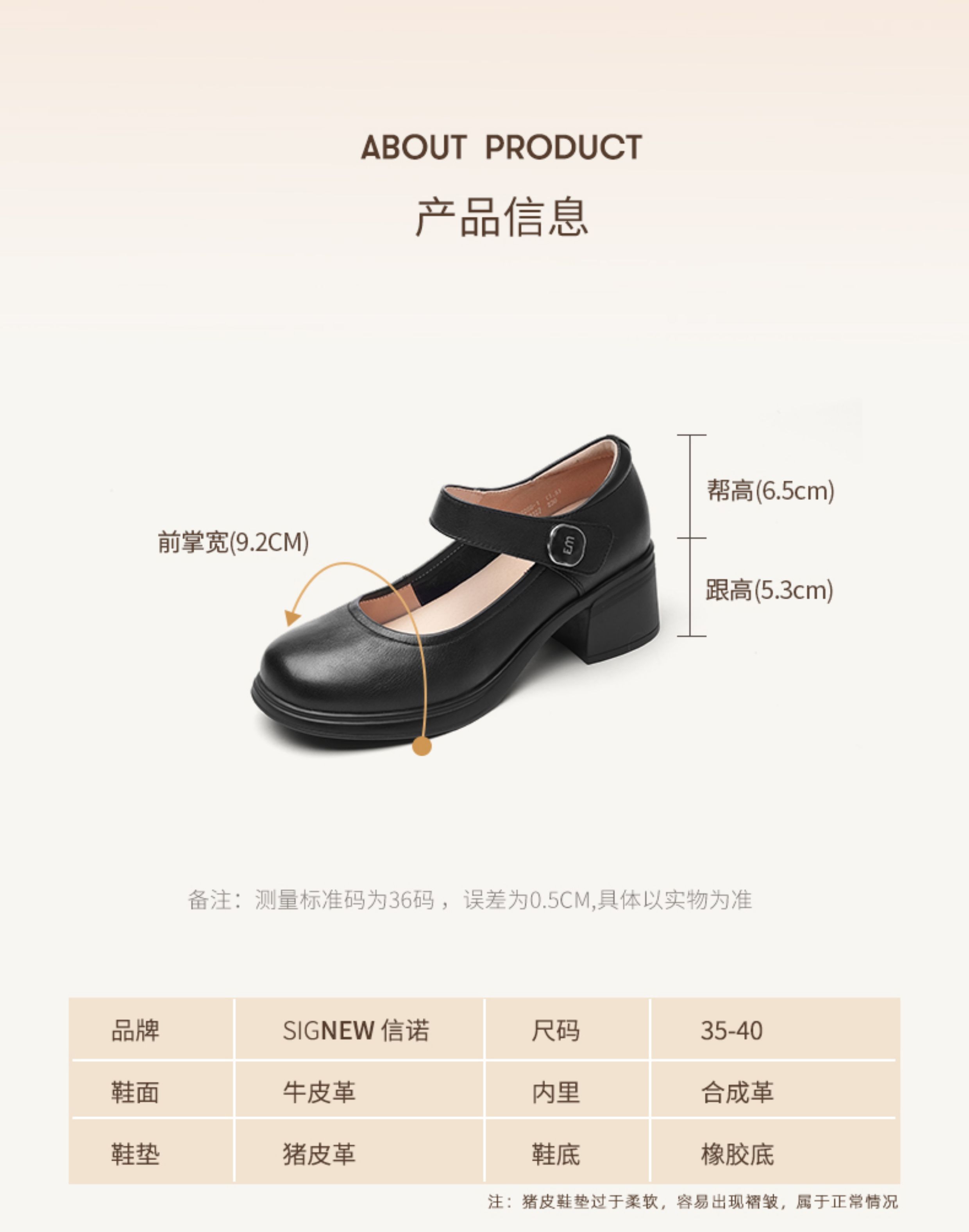 信诺真皮妈妈鞋女2025夏季新款软底粗跟高跟单鞋皮鞋法式玛丽珍鞋5Q2066-1