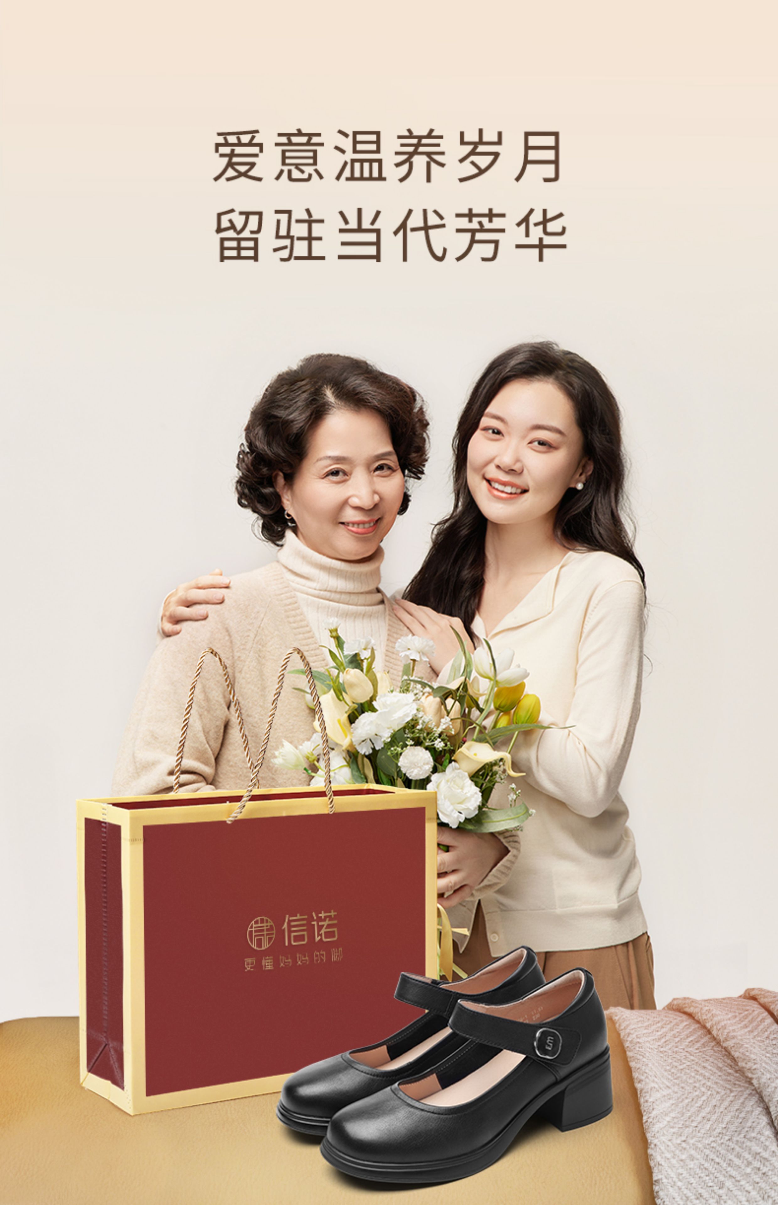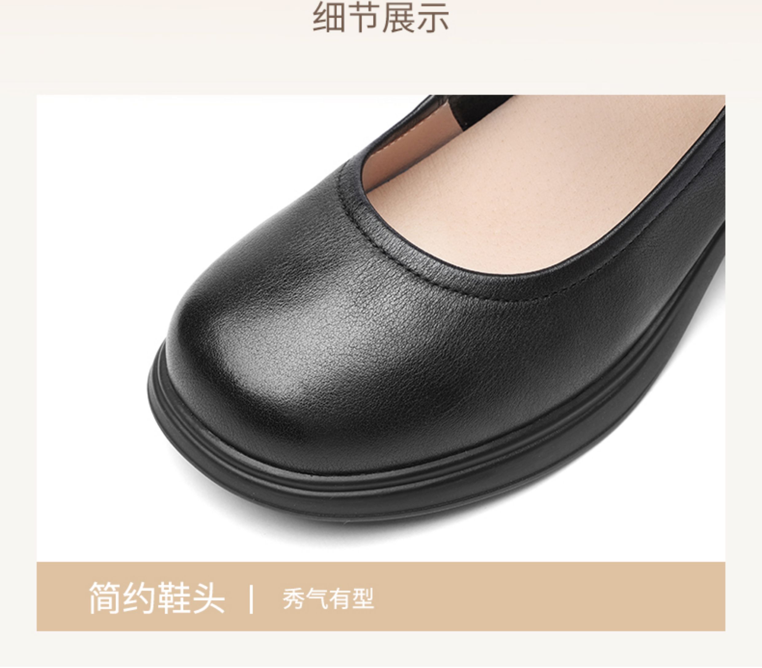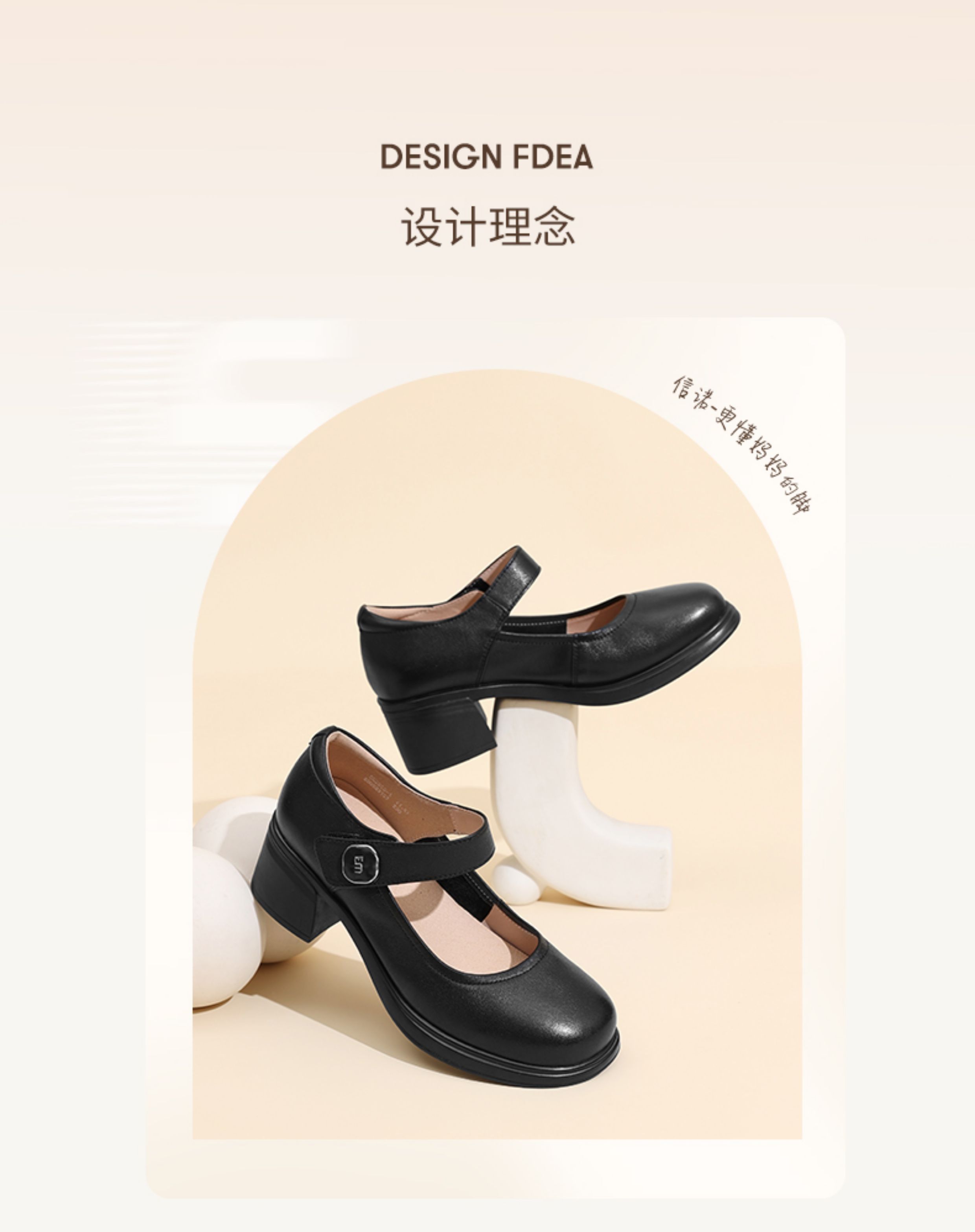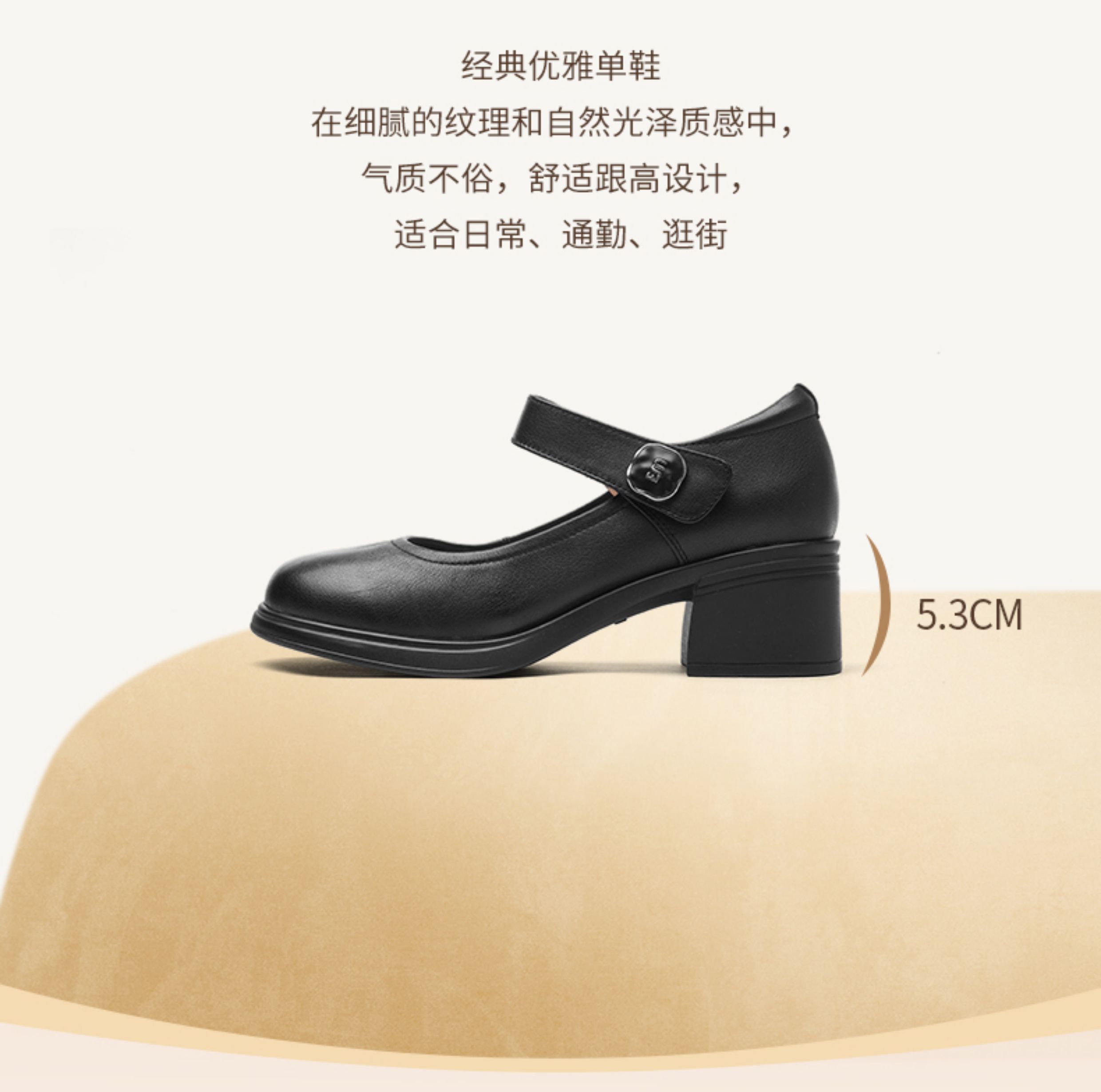 信诺真皮妈妈鞋女2025夏季新款软底粗跟高跟单鞋皮鞋法式玛丽珍鞋5Q2066-1