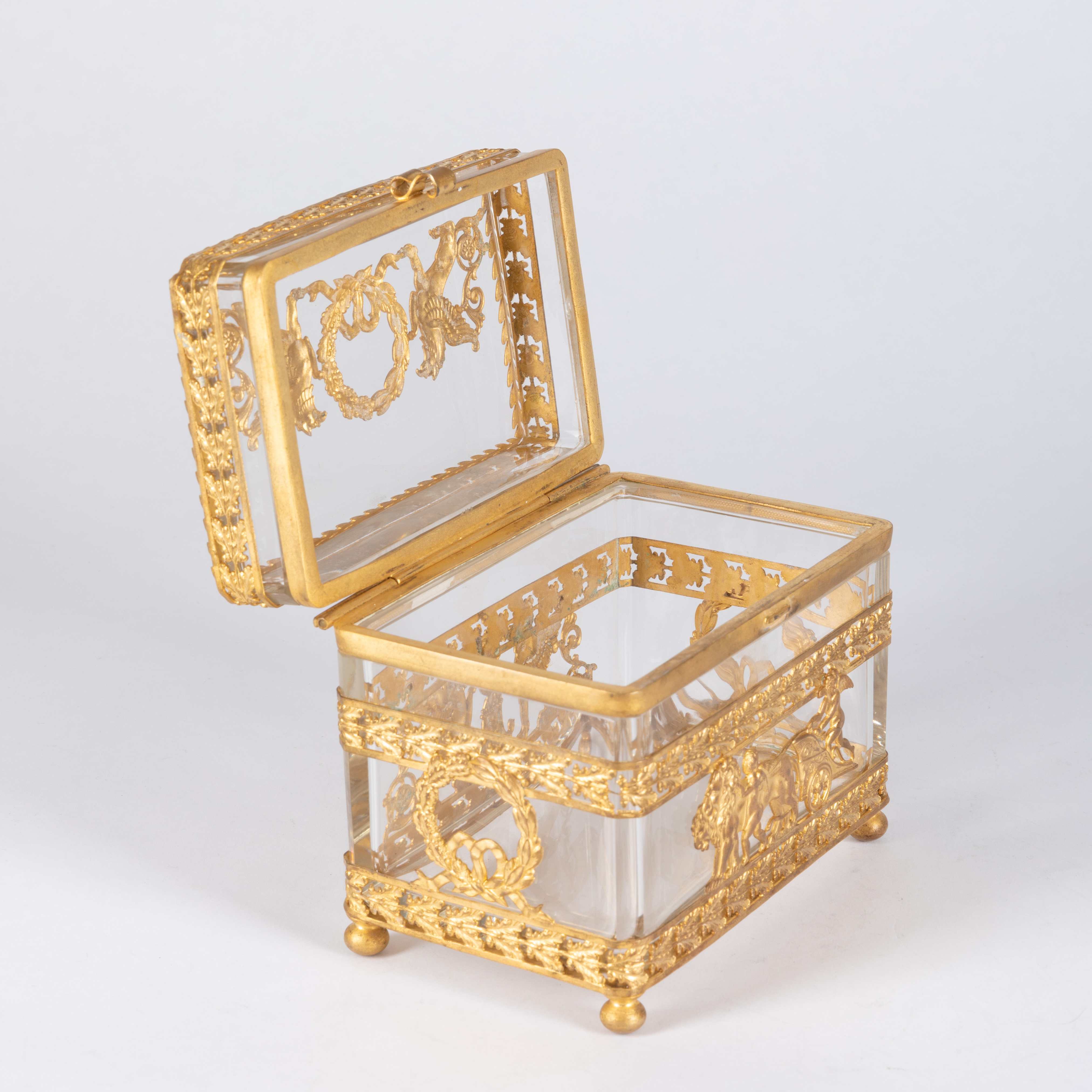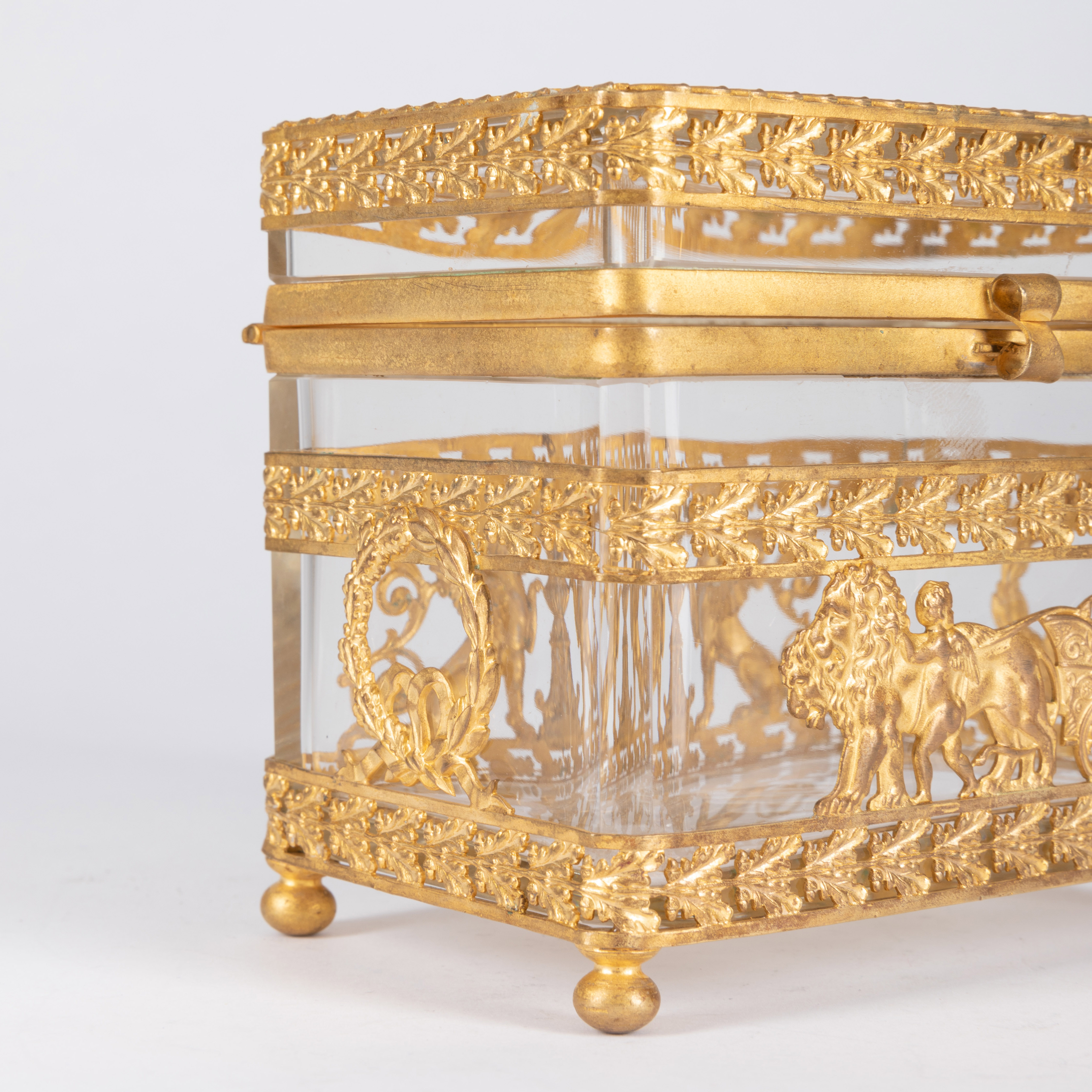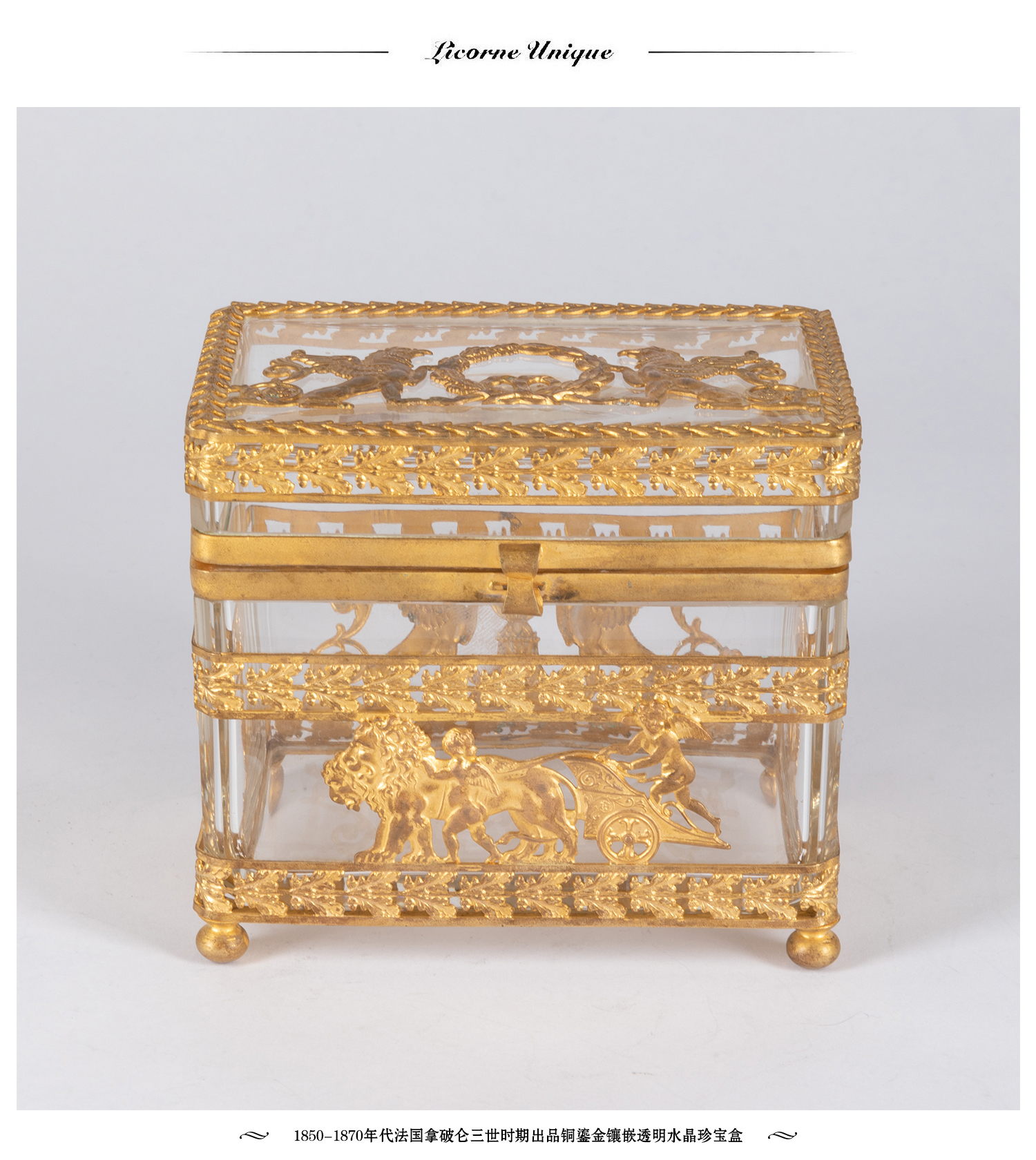 独角鹿西洋古董法国拿破仑三世时期出品铜鎏金镶嵌透明水晶珍宝盒