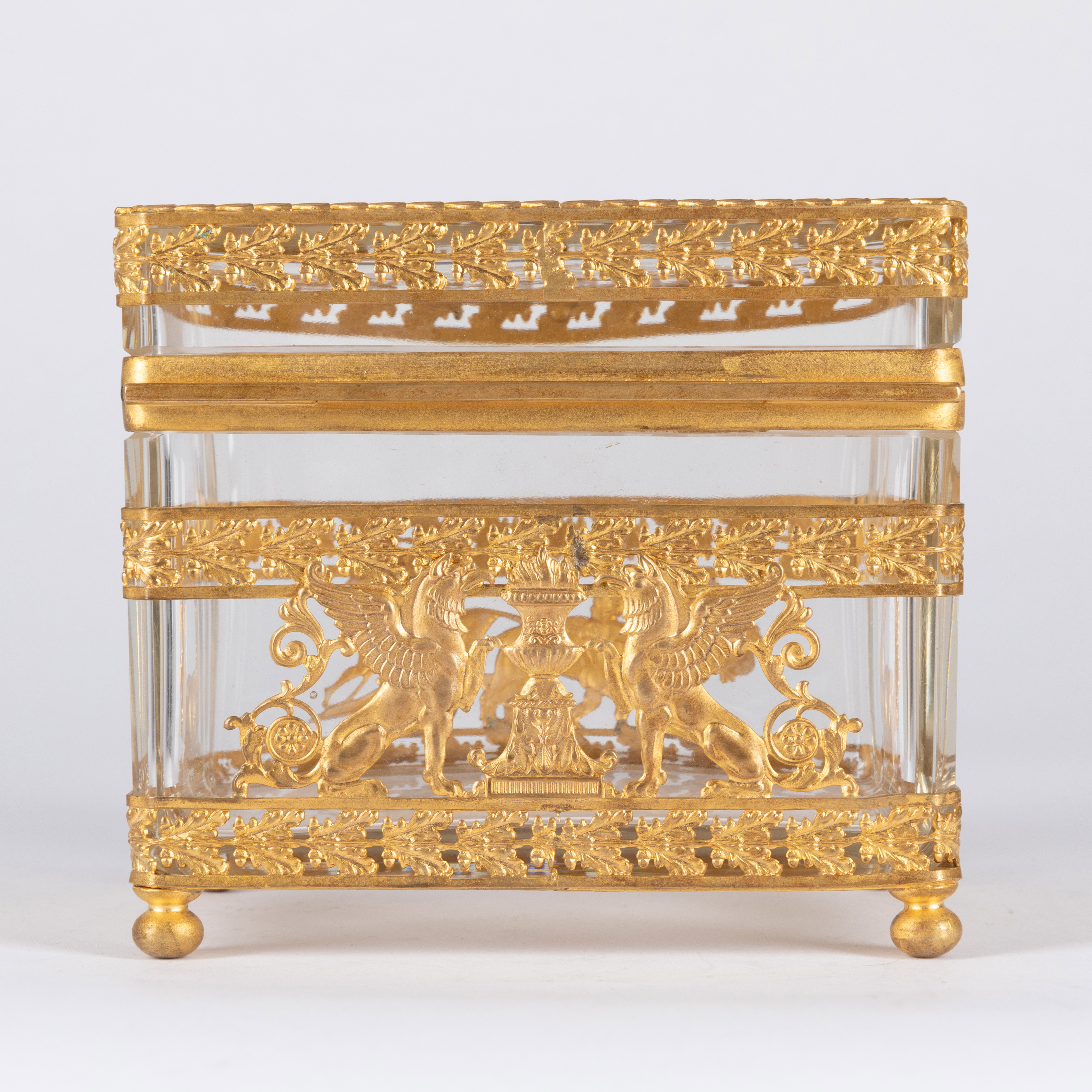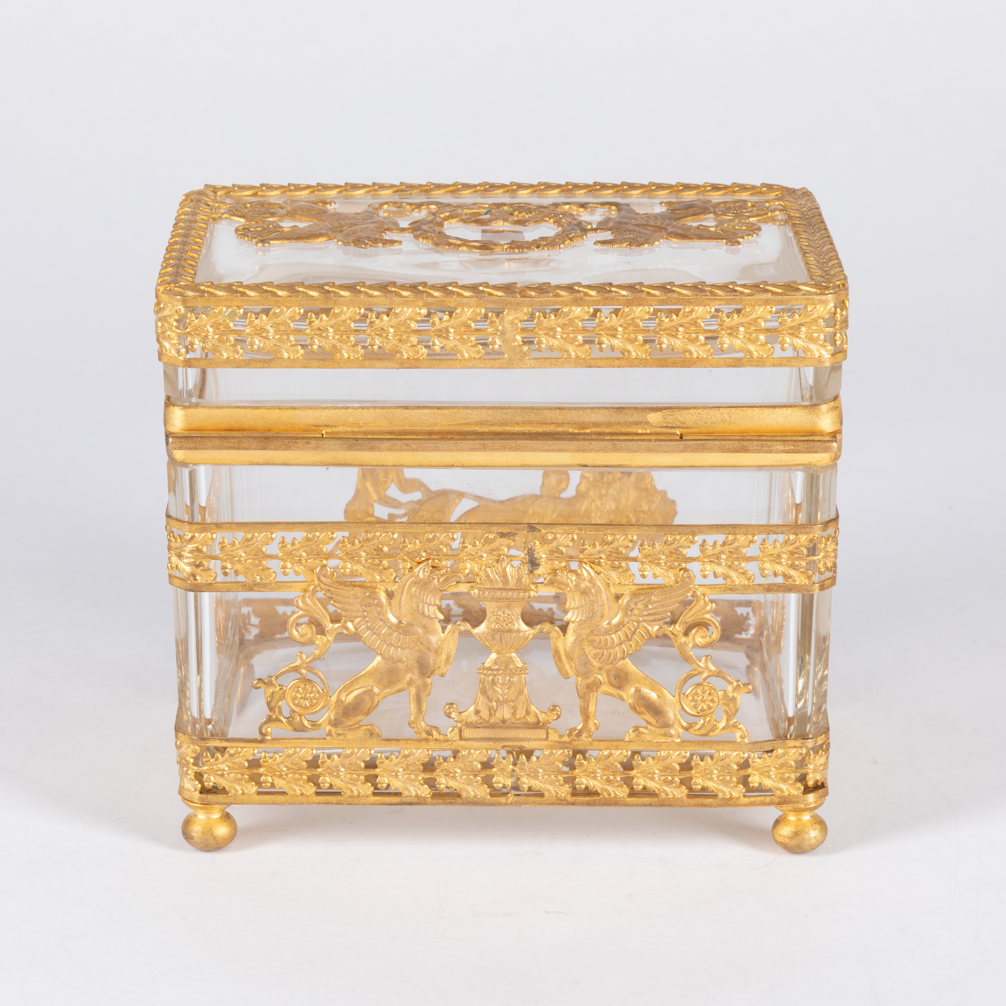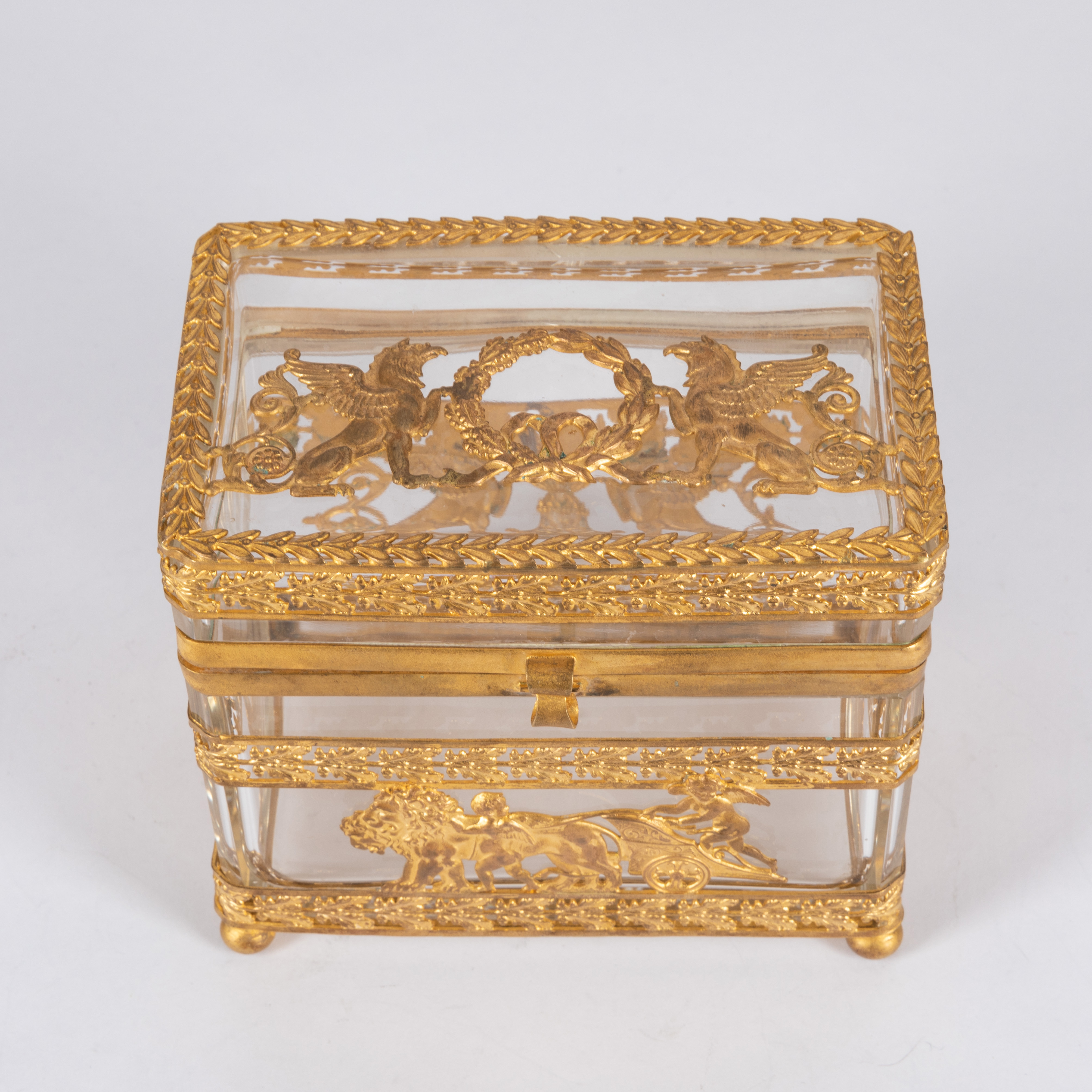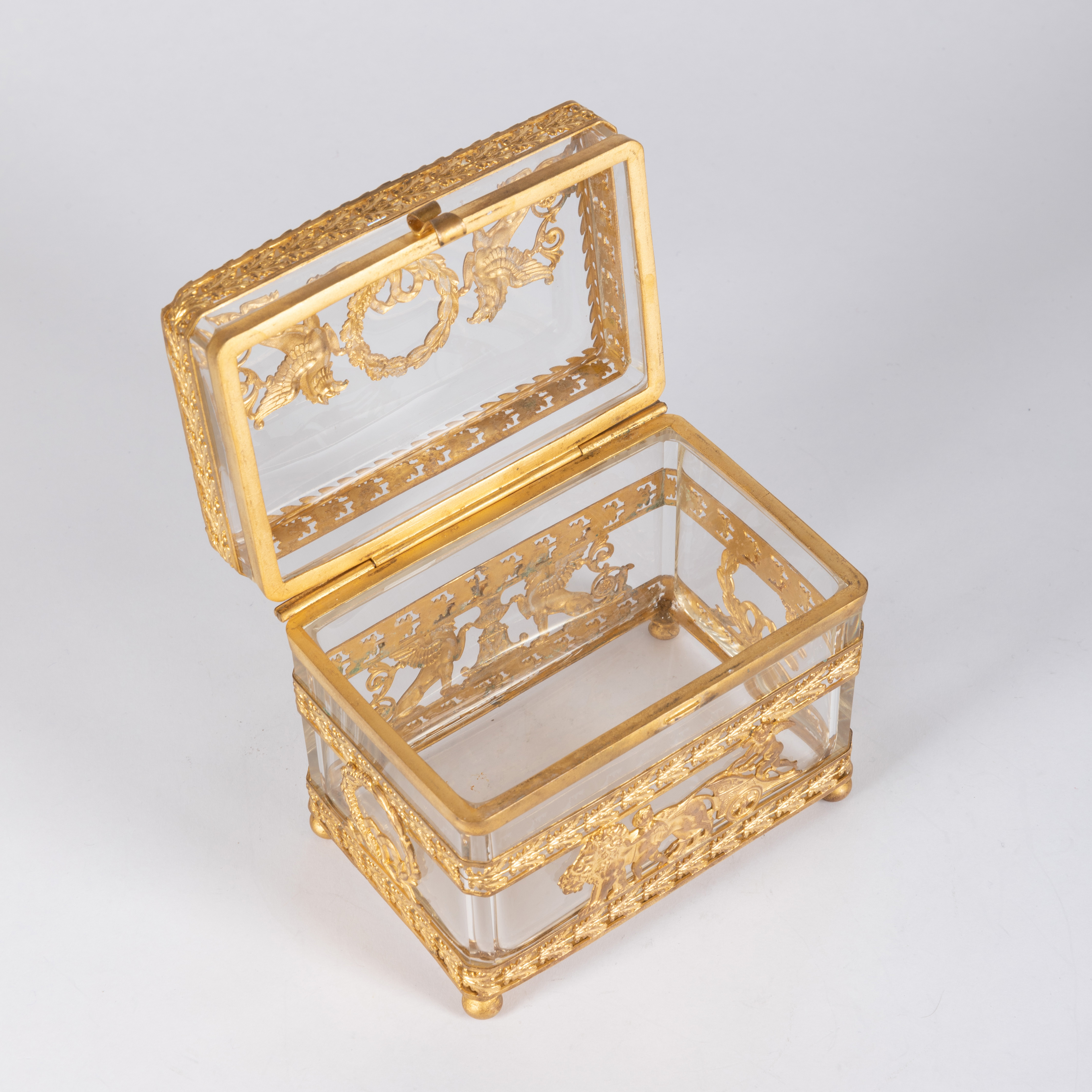 独角鹿西洋古董法国拿破仑三世时期出品铜鎏金镶嵌透明水晶珍宝盒