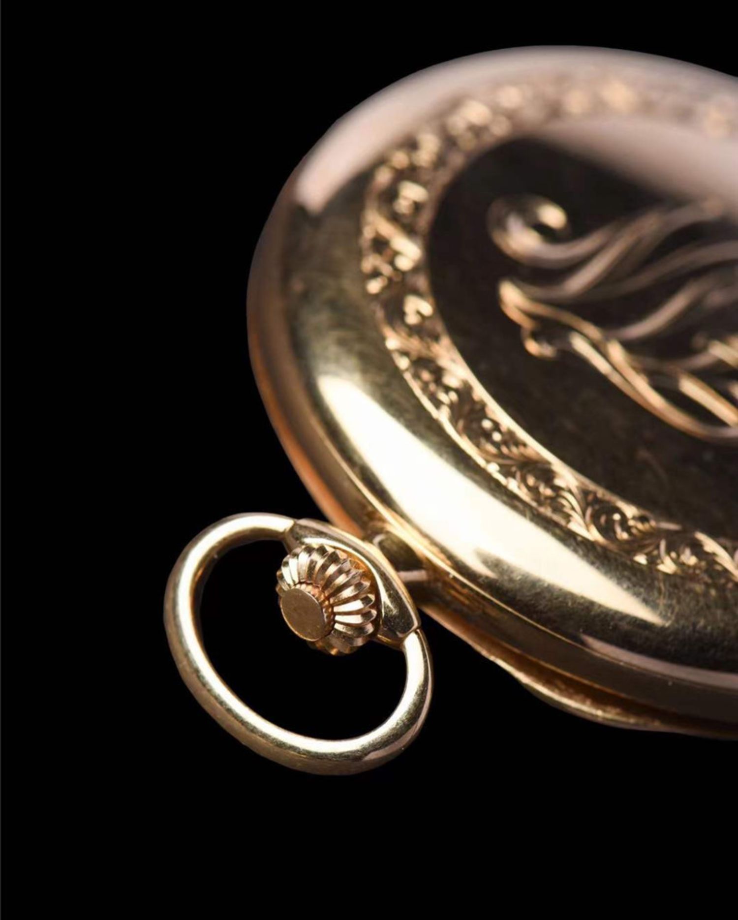 独角鹿西洋古董1980-1990年代18k黄金怀表 配黄金表链