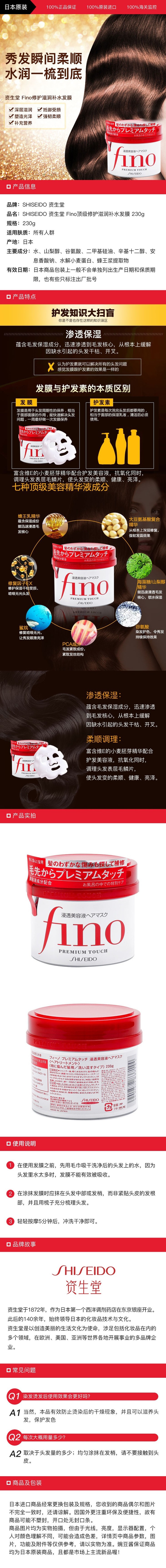 【秀发润泽 告别金毛狮王】SHISEIDO 资生堂||Fino修护滋润补水发膜||230g