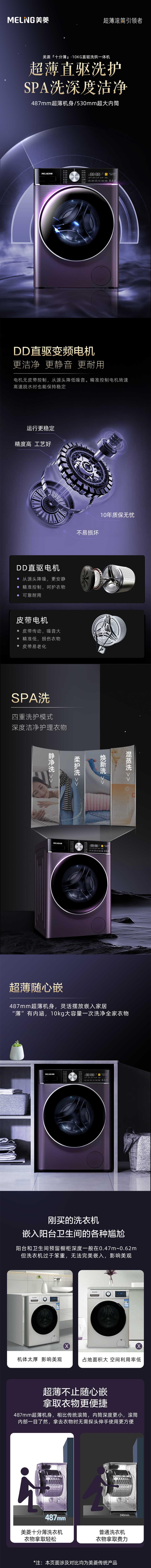 美菱(252170)十分薄 10公斤滚筒洗衣机 MG100-14596DHLX(晶钻紫)