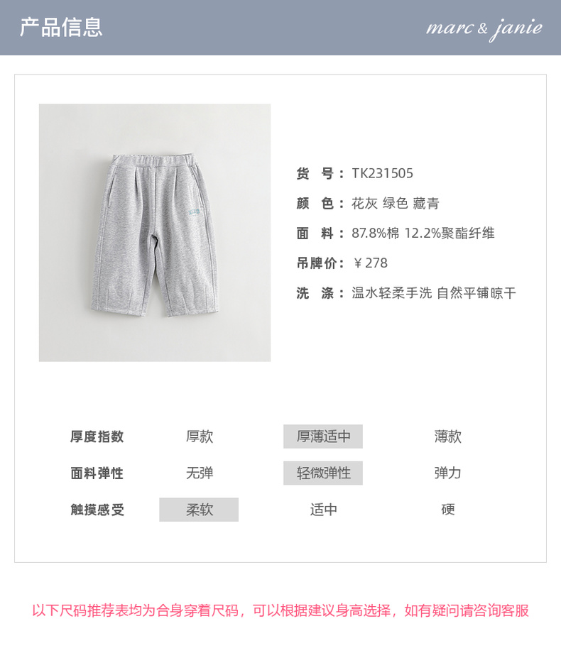 马克珍妮男女童元气学院撞色字母萝卜裤 儿童老爹裤春秋款231505