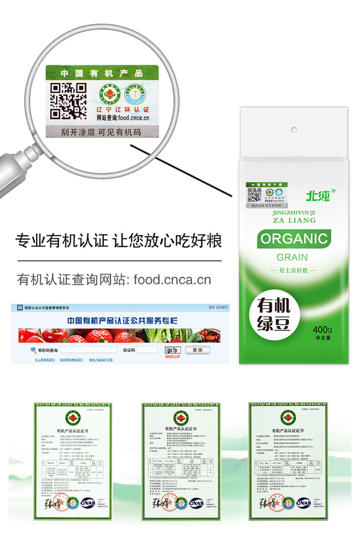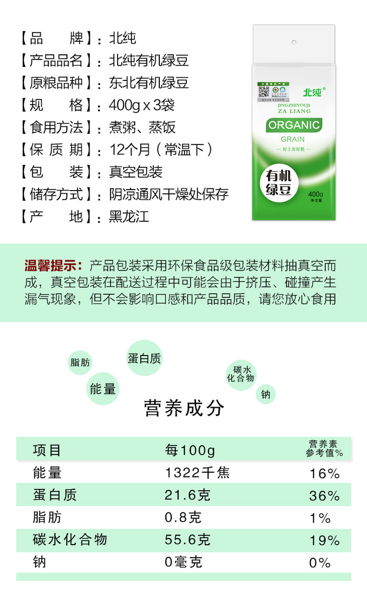 丨有机丨绿豆 400g*3袋 北纯 东北粗粮 杂粮 冰箱冷藏