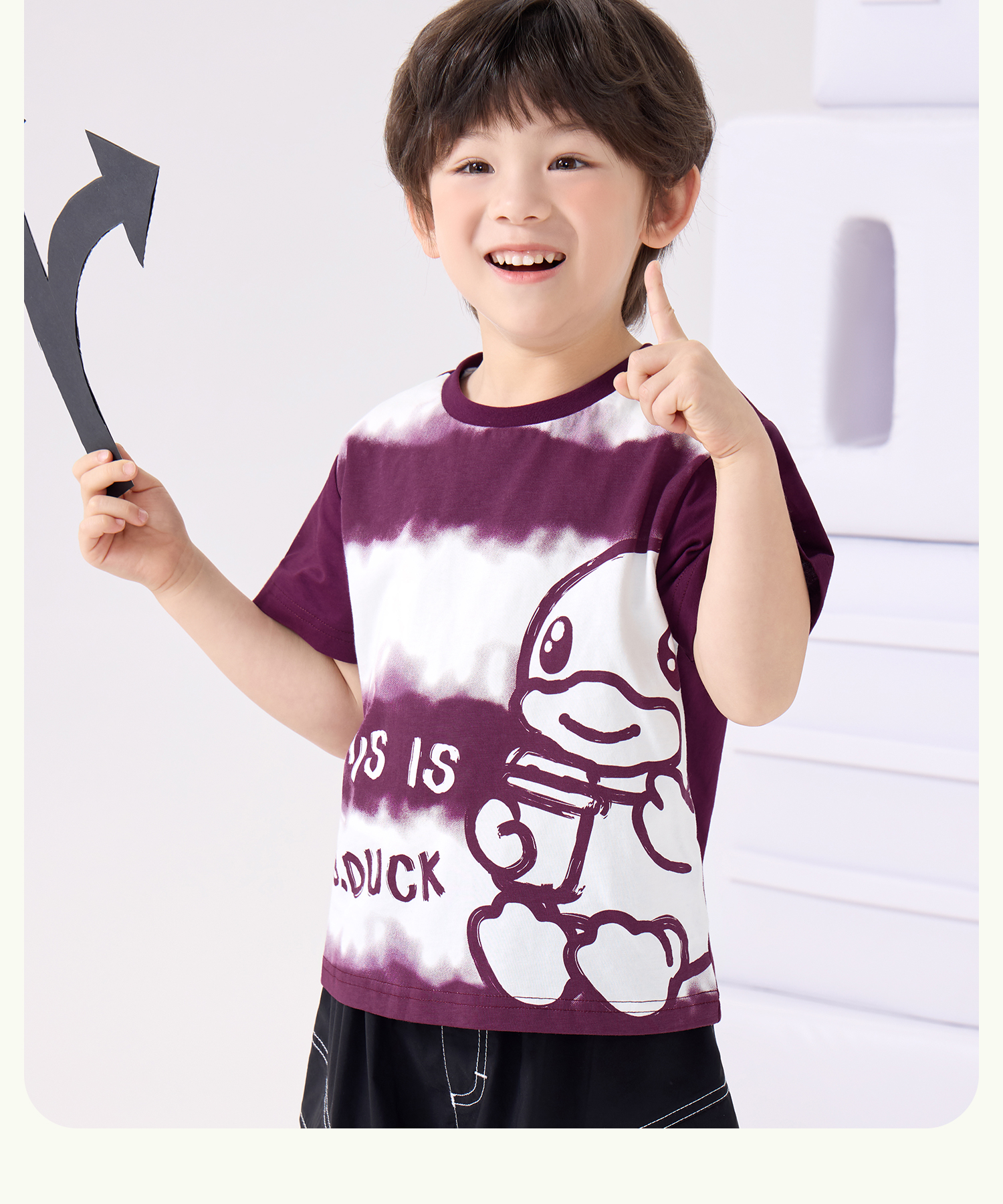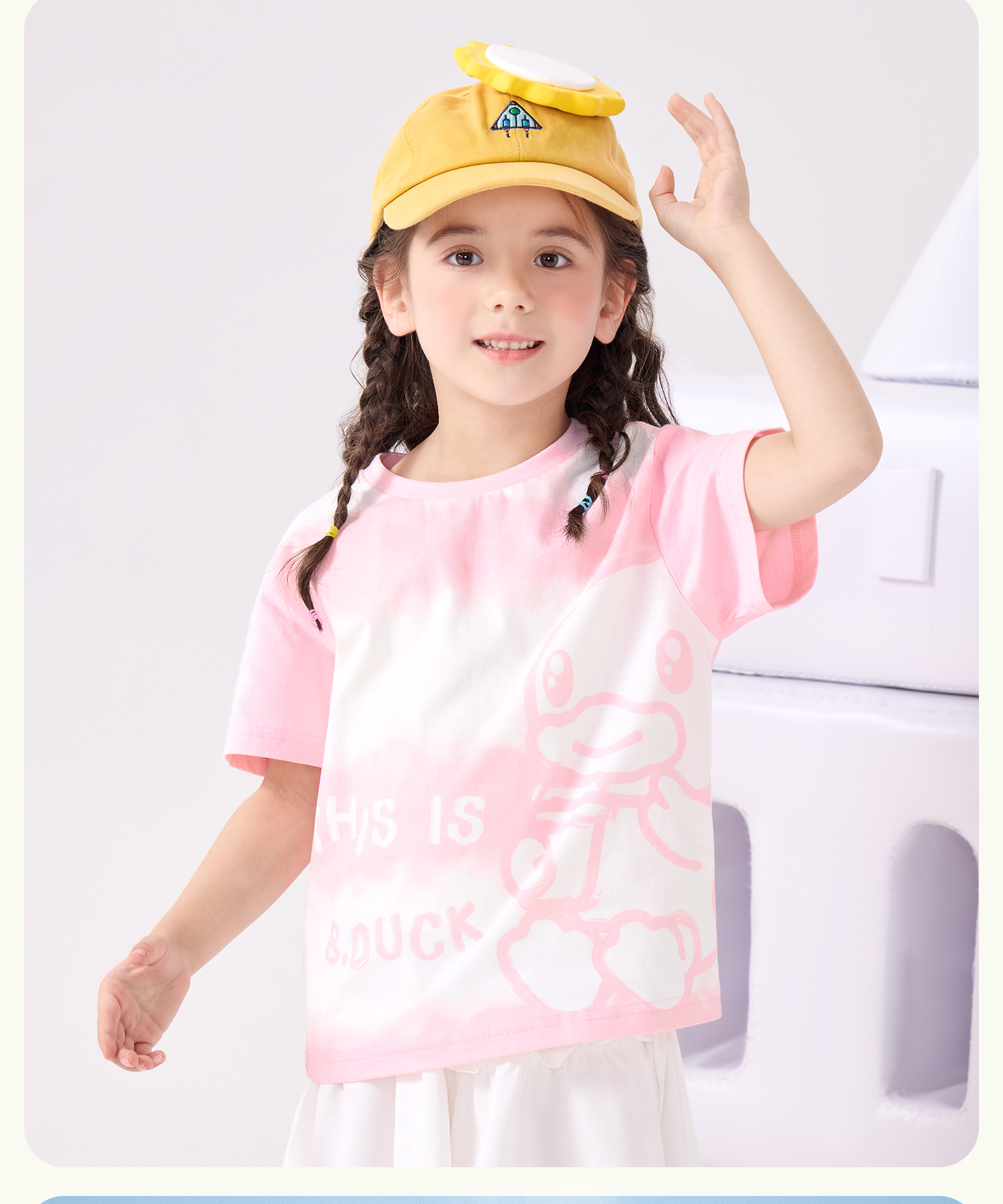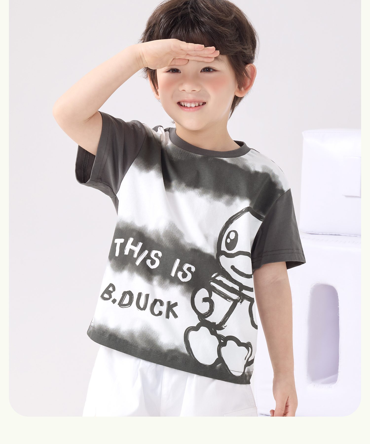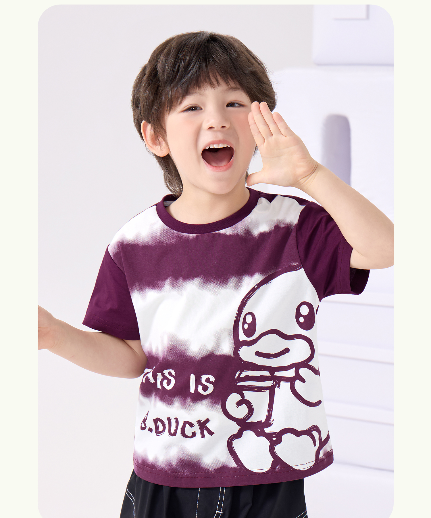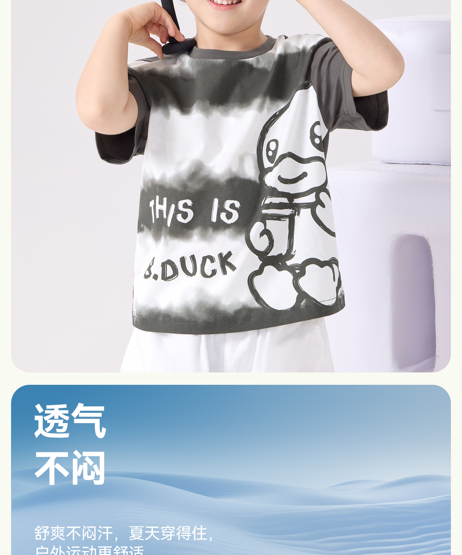 bduck小黄鸭童装夏季男童短袖t恤纯棉夏装儿童半袖女童上衣薄105-150 BF2601023