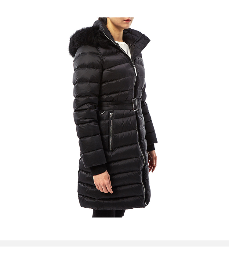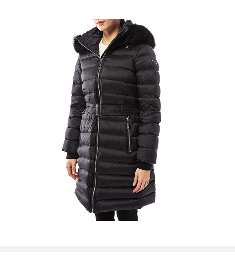 BURBERRY 巴宝莉 女士 Limehouse 绗缝软垫系带连帽长款羽绒服 黑色 8003537 A1189