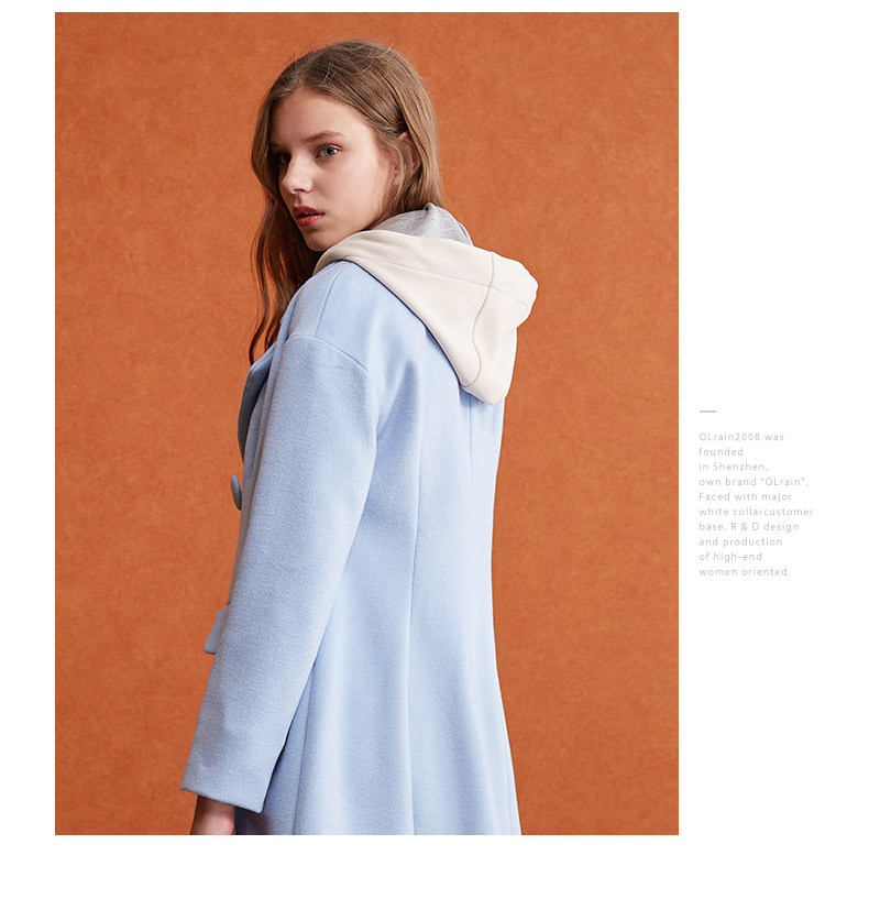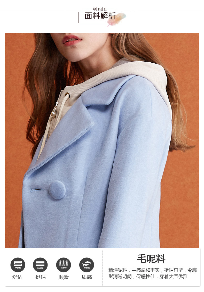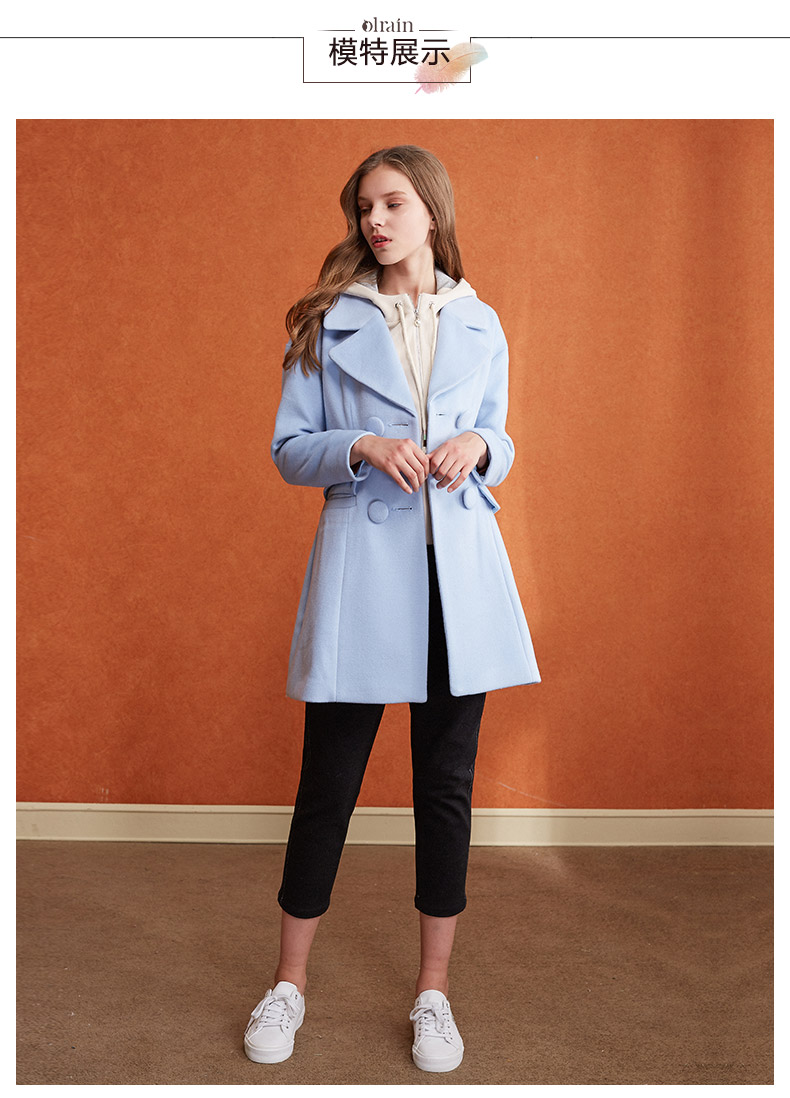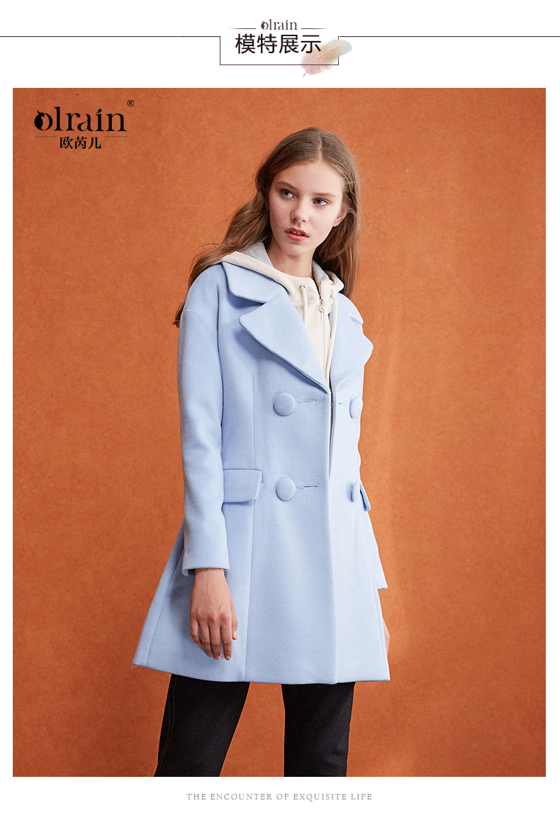 欧芮儿2017冬装新款翻领长袖毛呢外套女中长款