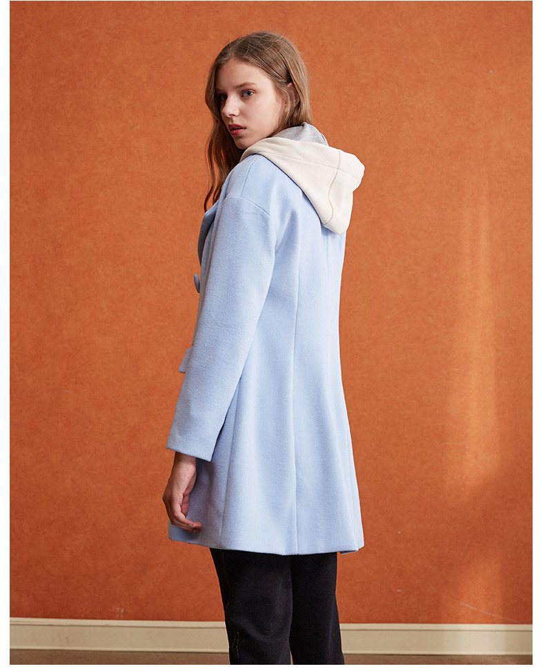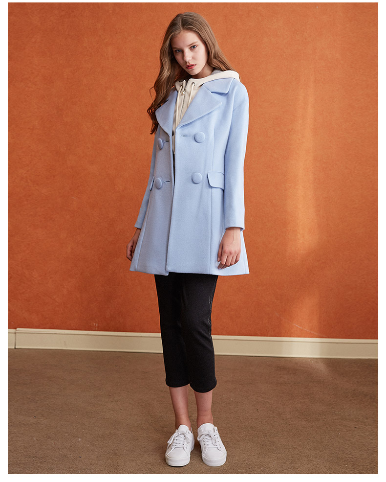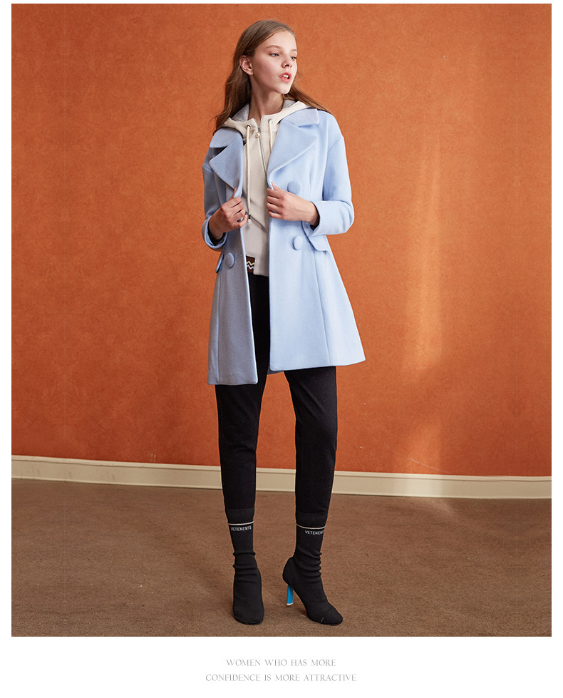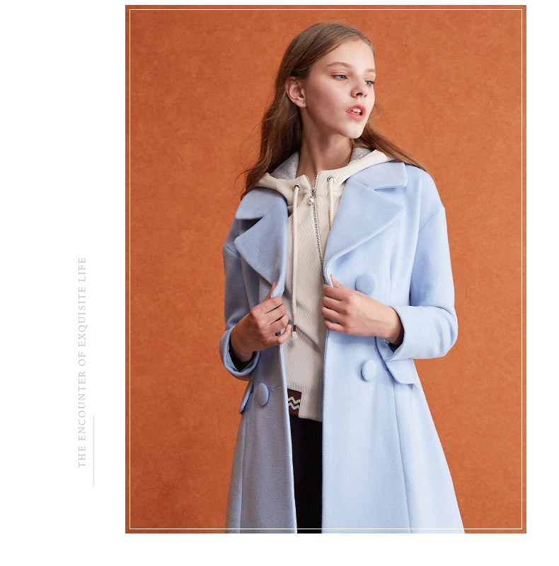 欧芮儿2017冬装新款翻领长袖毛呢外套女中长款