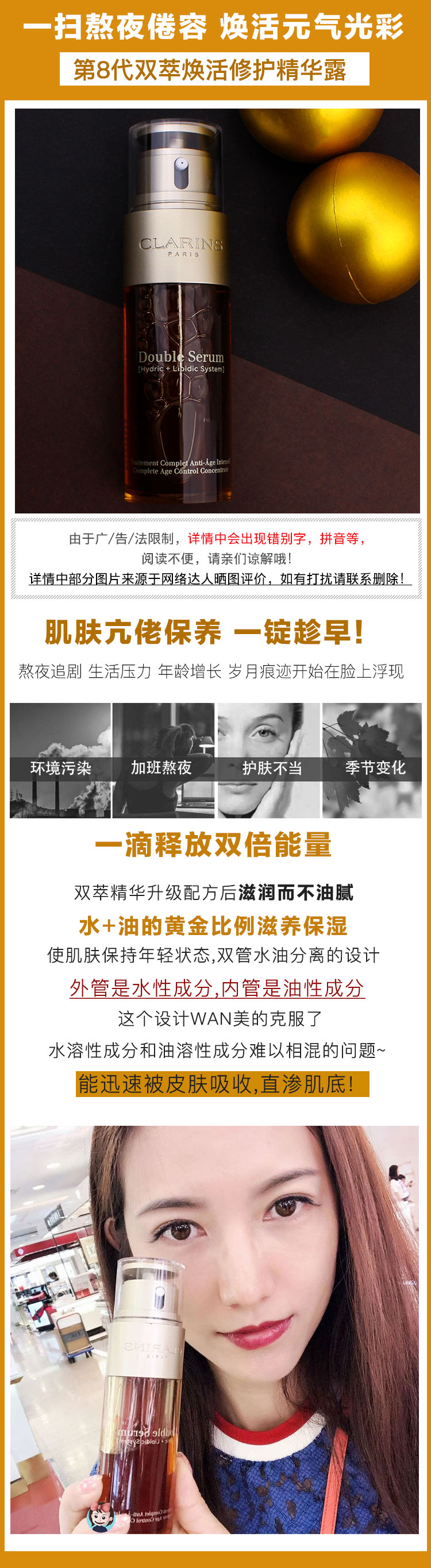 熬夜党必入~娇韵诗双萃焕活修护精华露50ml抗老滋养年轻黄金双瓶JPY带授权招加盟代理