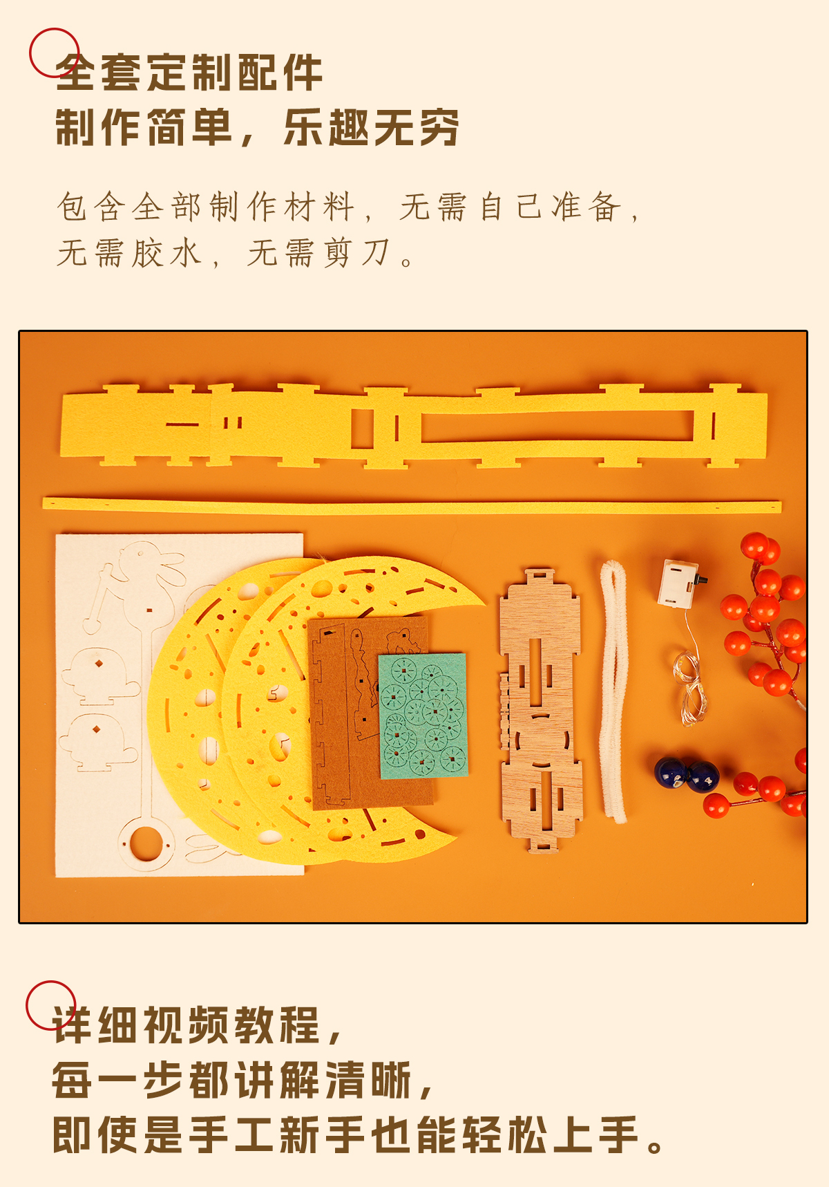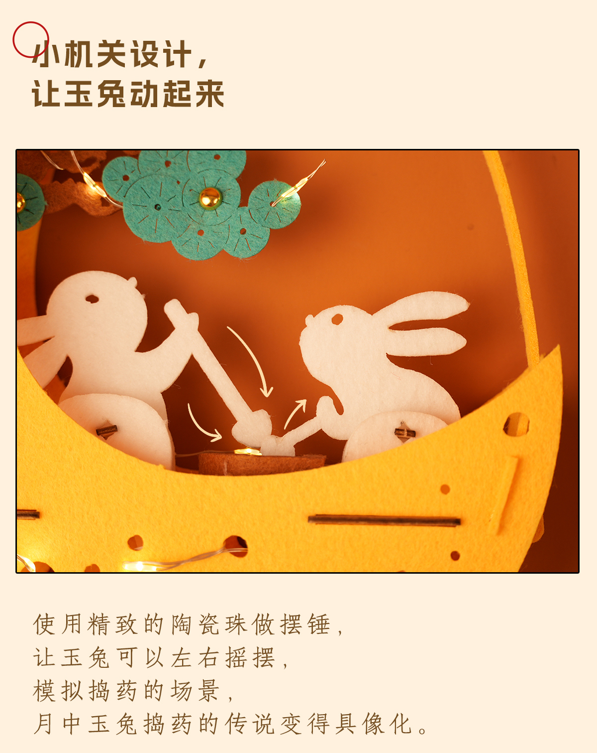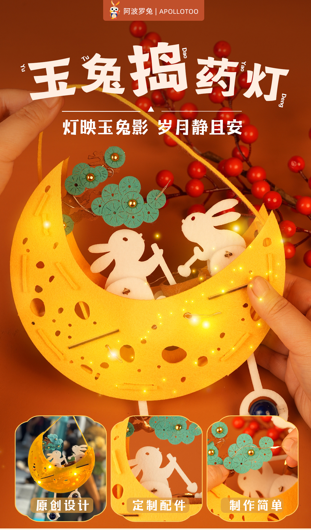 阿波罗兔中秋DIY兔子灯,玉兔捣药灯吉祥灵兔灯材料包可点亮