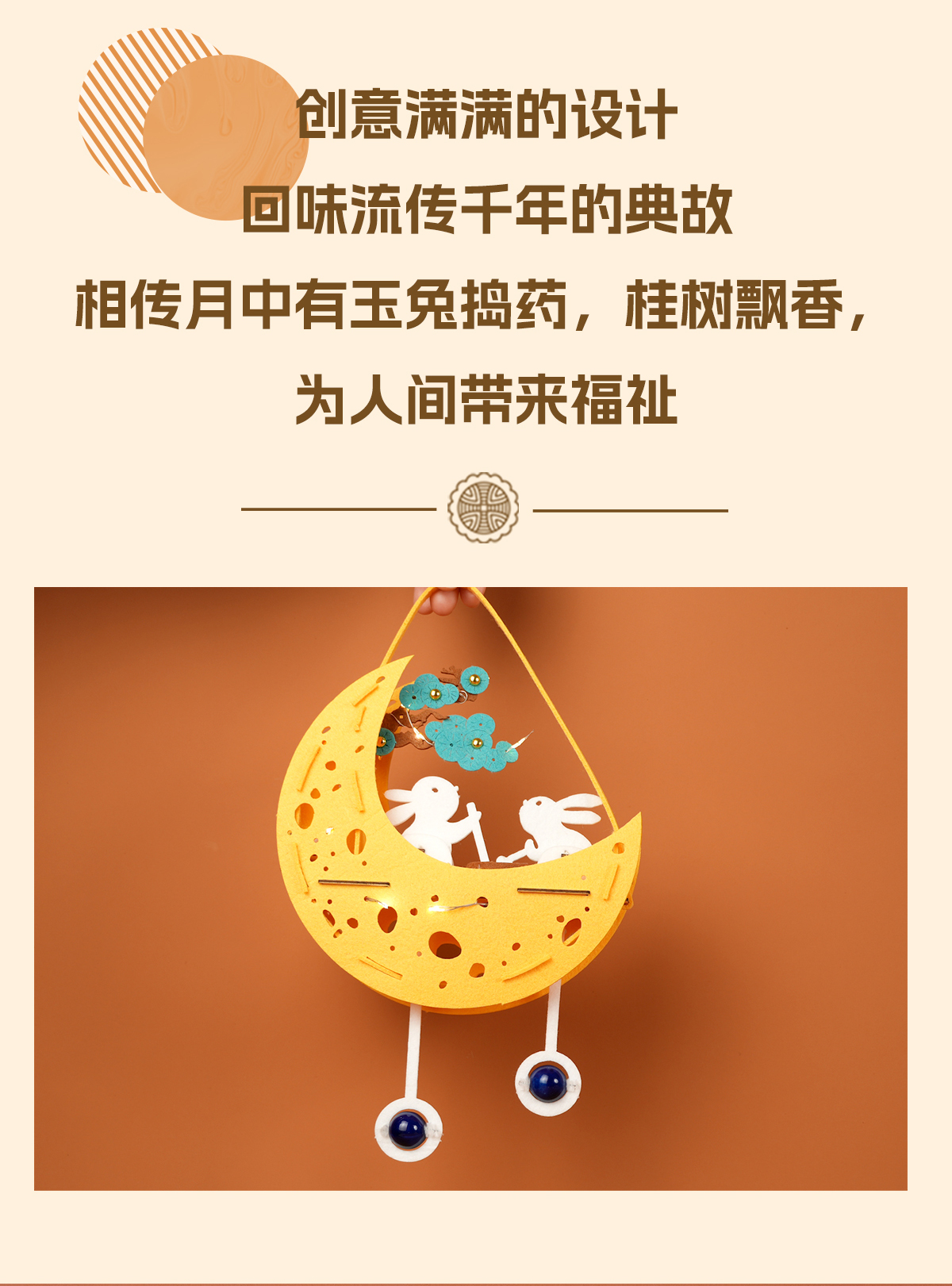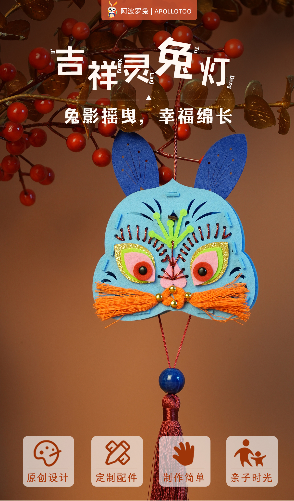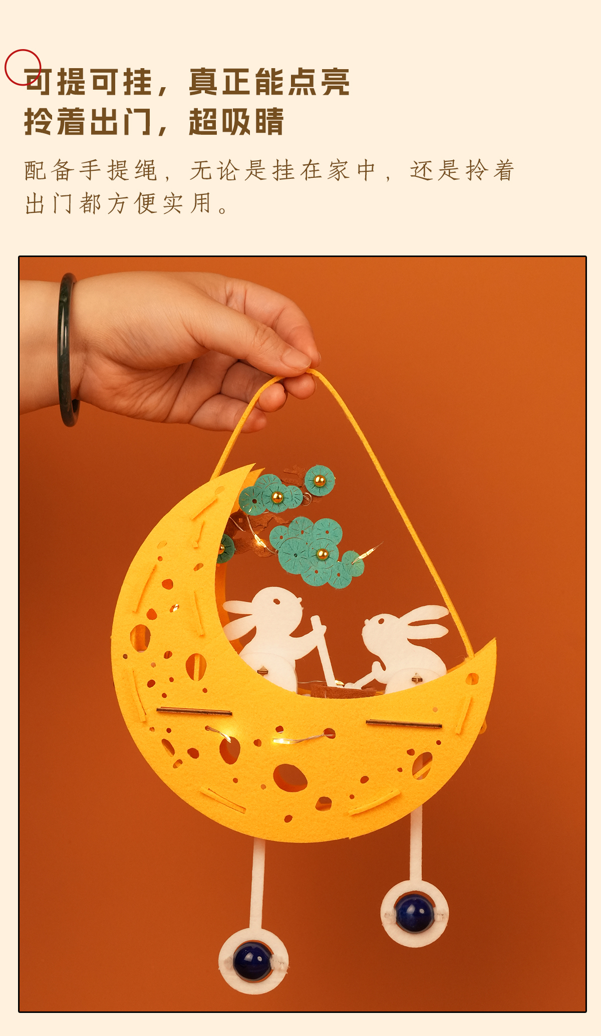 阿波罗兔中秋DIY兔子灯,玉兔捣药灯吉祥灵兔灯材料包可点亮