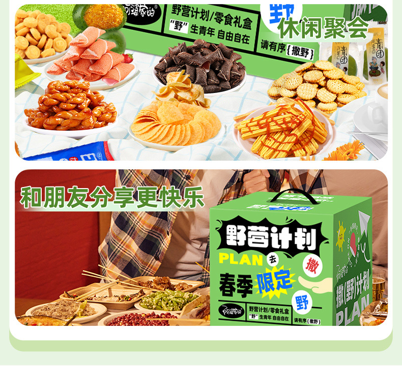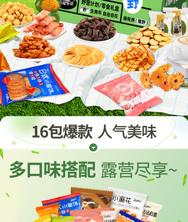 「“撒野”计划!多口味搭配」阿婆家的野营计划露营零食大礼包礼盒 春游的用品网红零食休闲