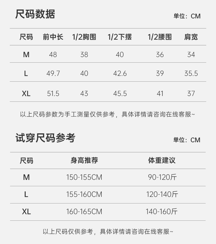 XL:(身高160-165cm;体重140-160斤)
