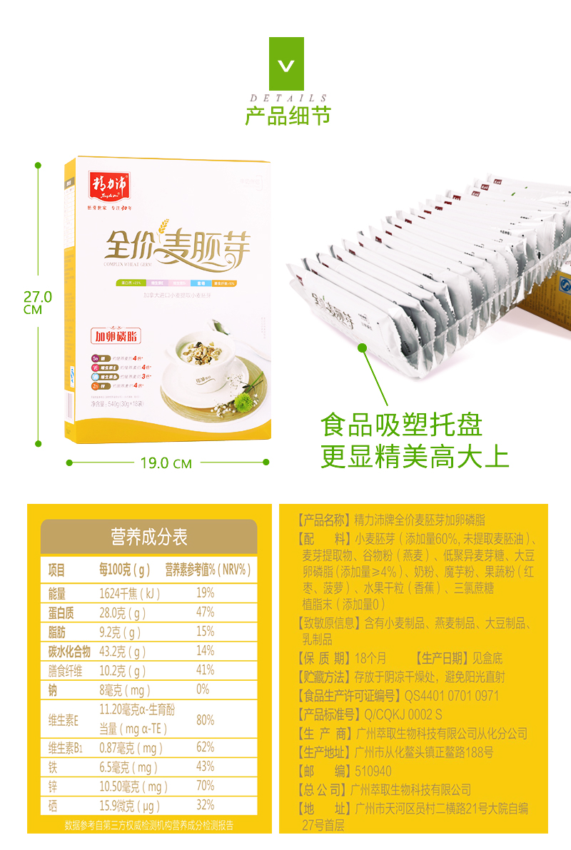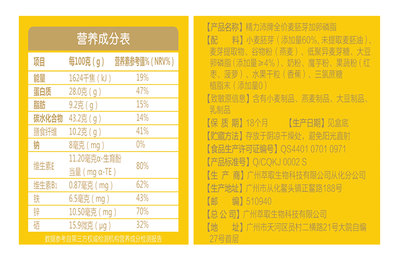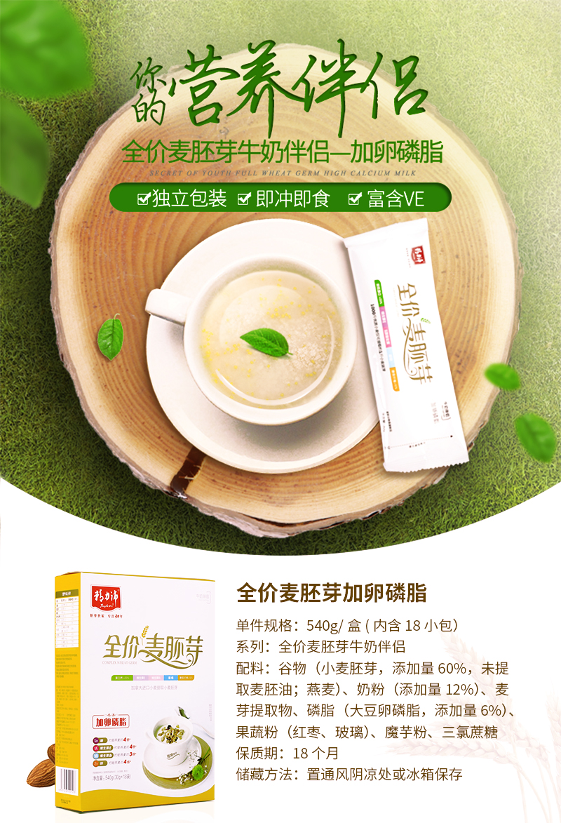 精力沛牌全价麦胚芽加卵磷脂540g(30g×18包)
