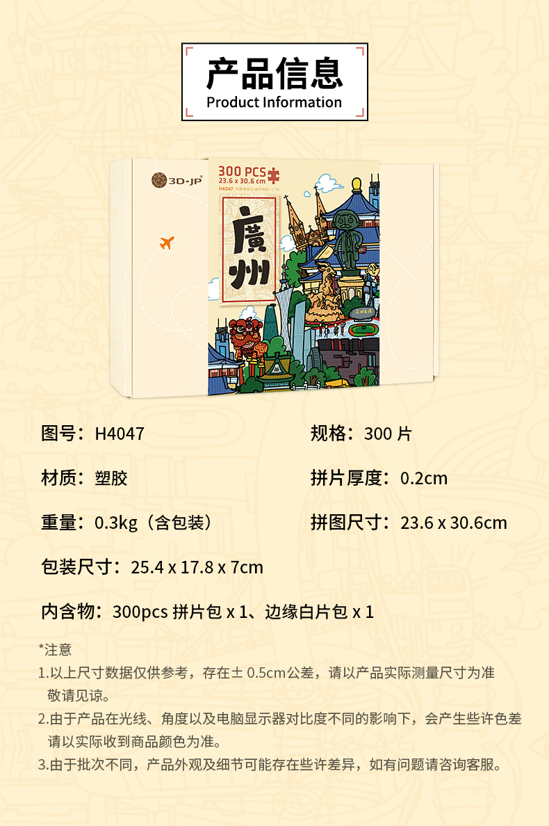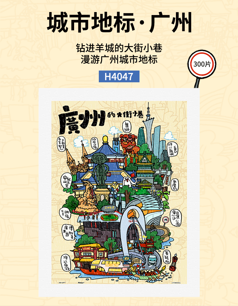 300片 平面塑料拼图 H4047 阿普食饭仙-城市地标·广州