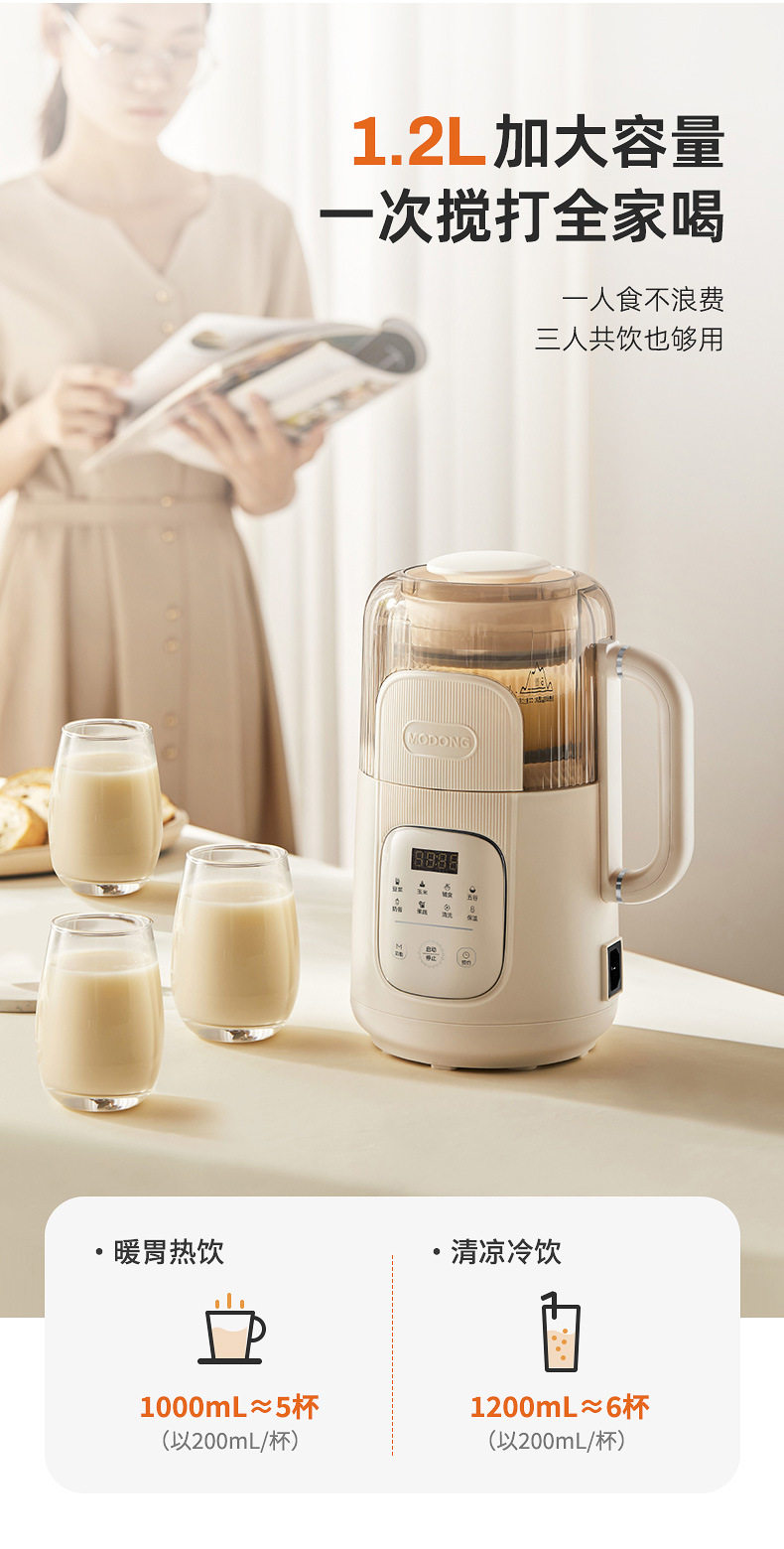 【24H预约】不用早起,煮完自动保温8H60℃,晚起豆浆都是暖暖的。