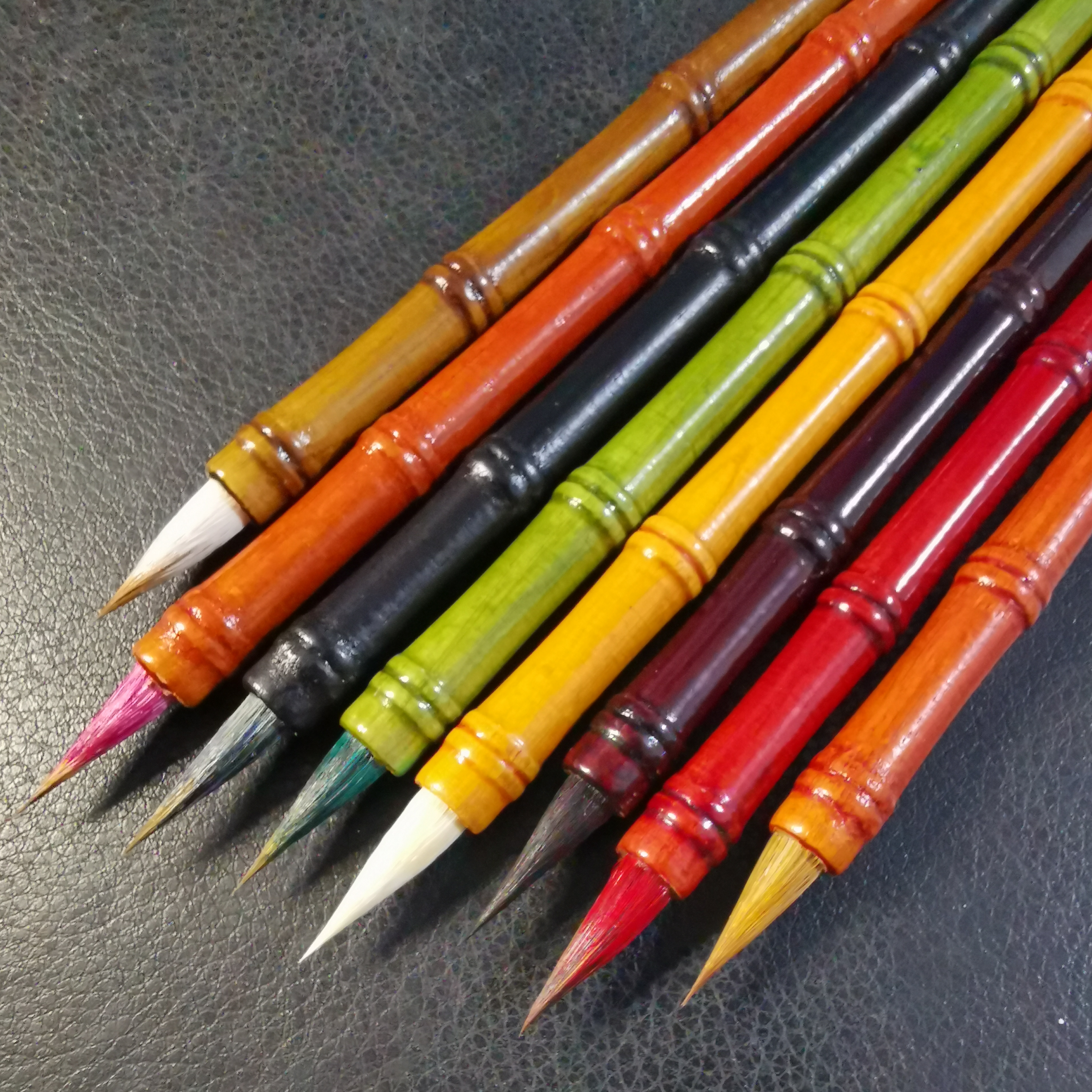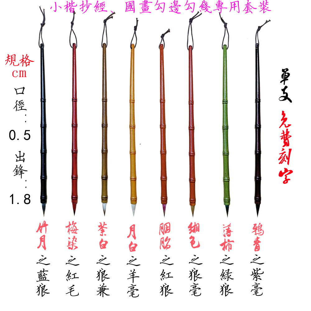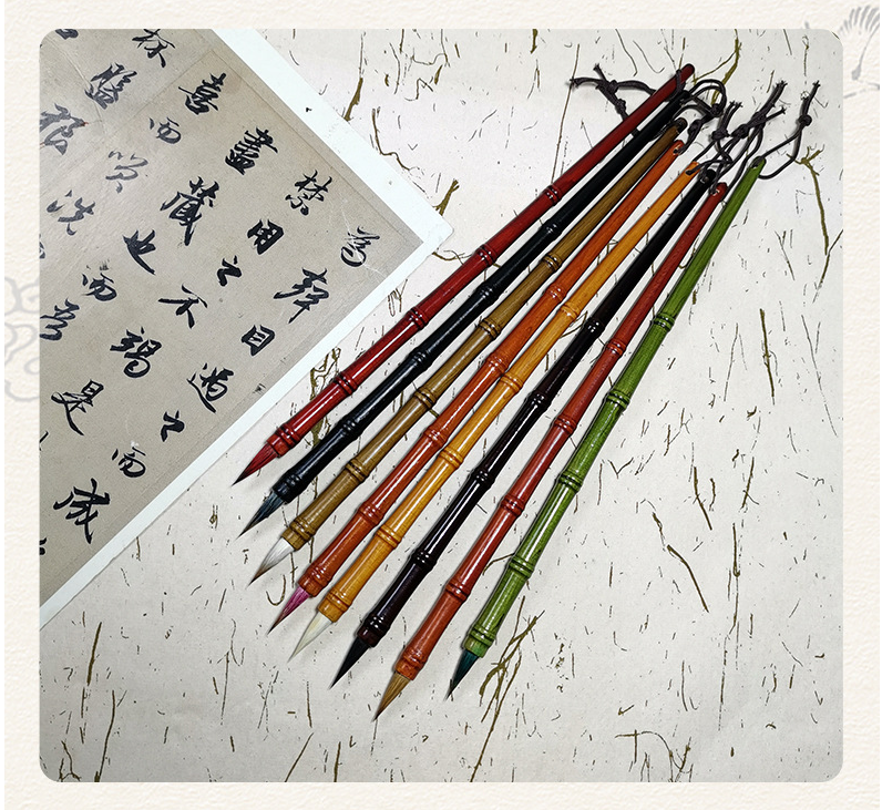 竹节造型八毫八色小楷文房四宝书法班培训选用含墨饱满有弹性