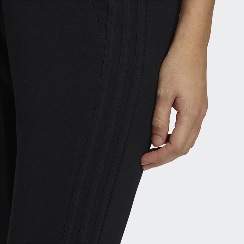 新春超值抢购 (YY)adidas/阿迪达斯 女子针织棉涤线圈透气舒适同色三条纹纯黑缩口长裤 GP0660