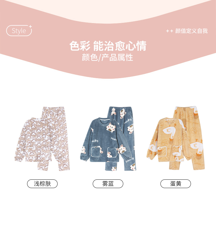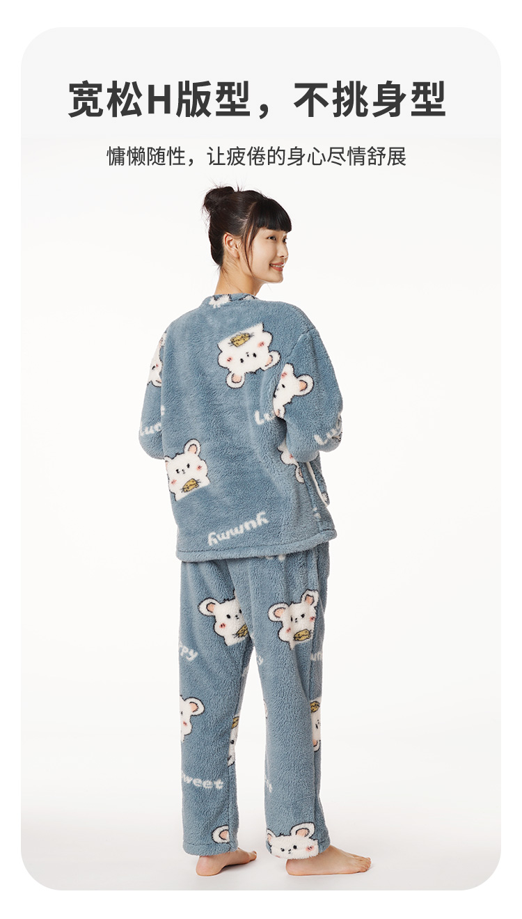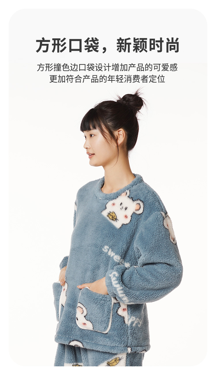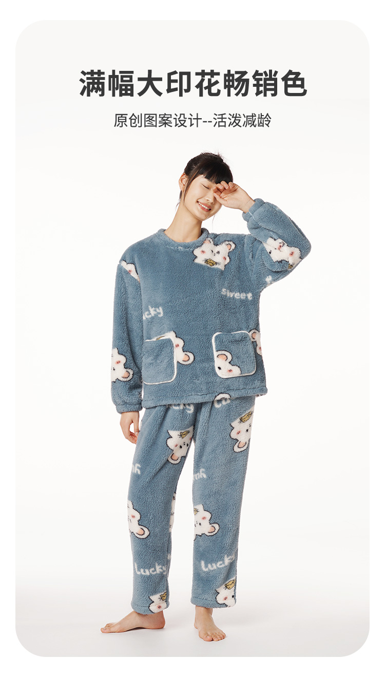 都市丽人生活家居女士特价法兰绒套装双面法兰绒厚家居服长袖睡衣LH22J3
