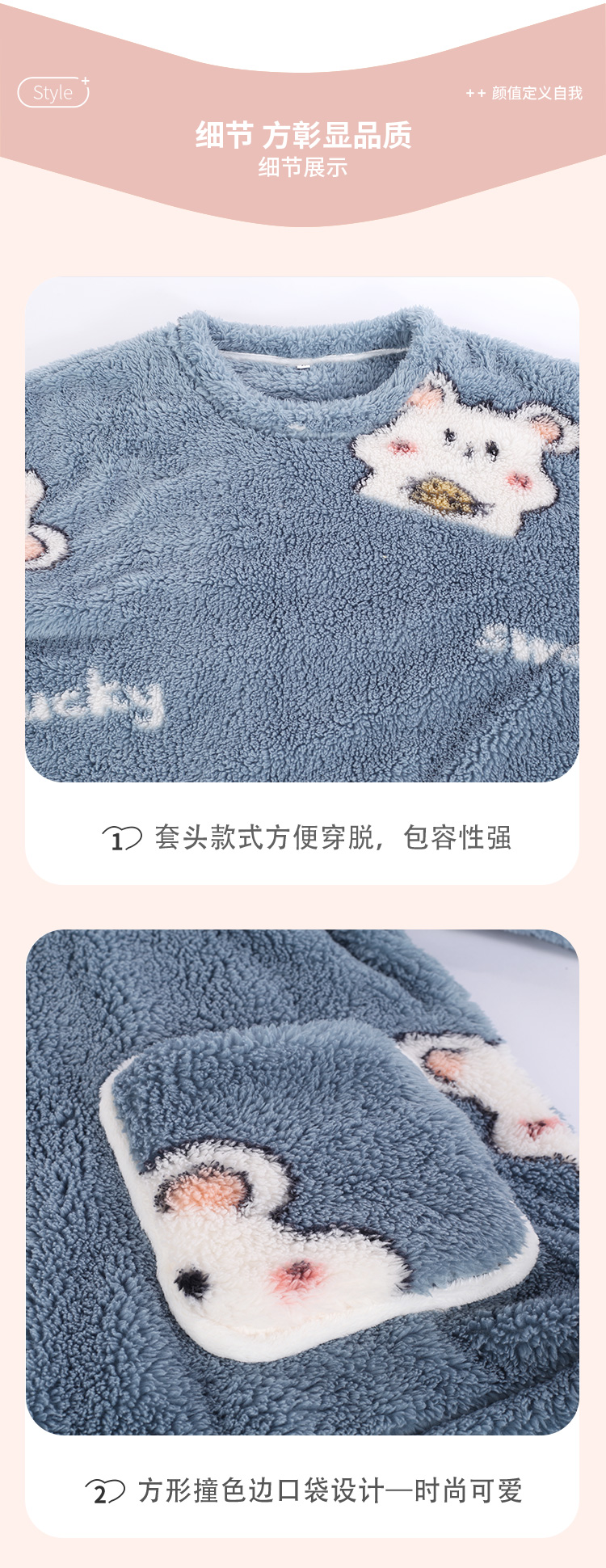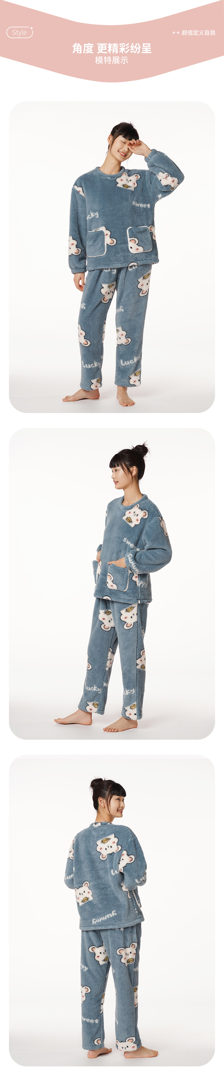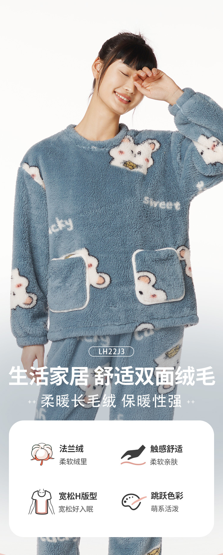 都市丽人生活家居女士特价法兰绒套装双面法兰绒厚家居服长袖睡衣LH22J3