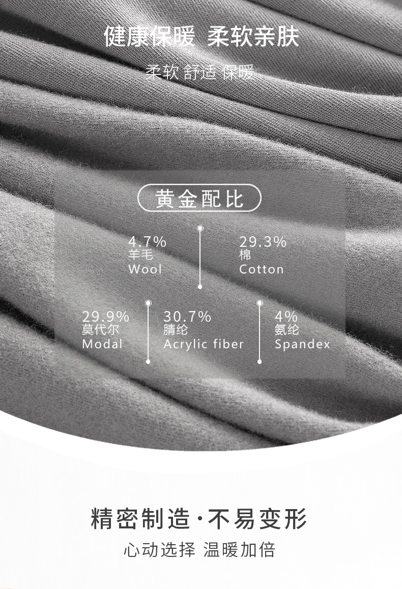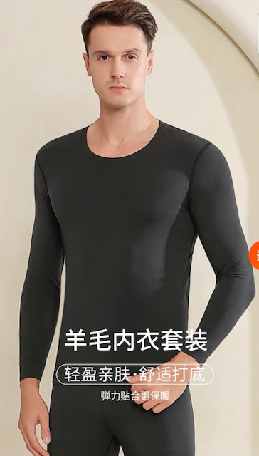 三针羊毛莫代尔单面绒圆领男内衣5610