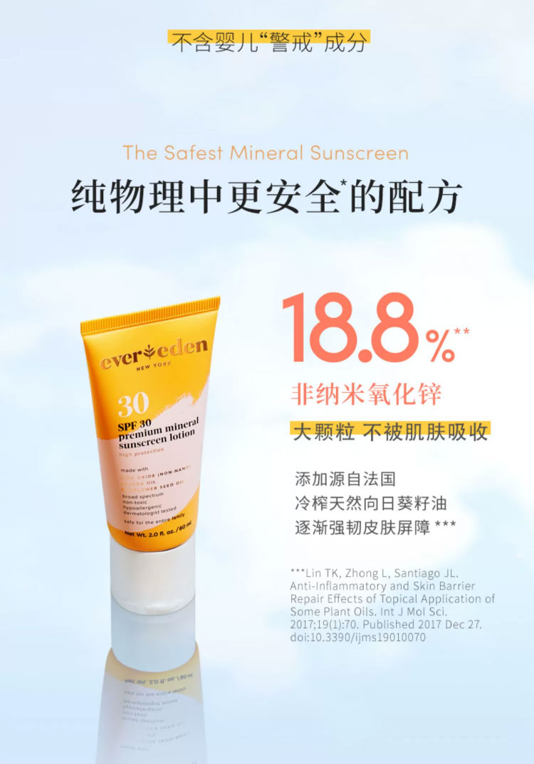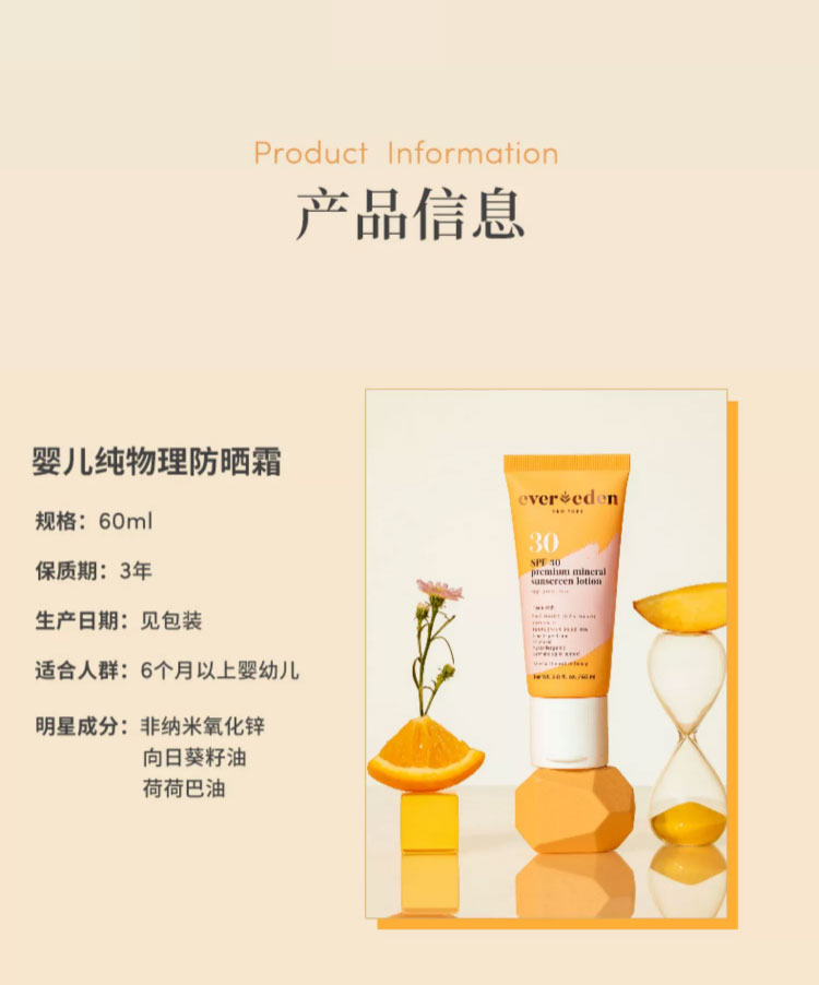 【买1送1】(6月龄+)Evereden婴童纯物理spf30 60ml,温水可卸