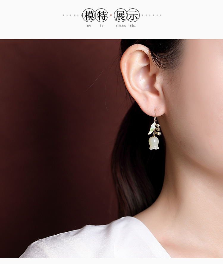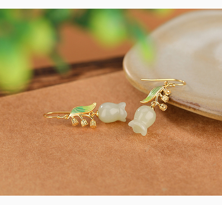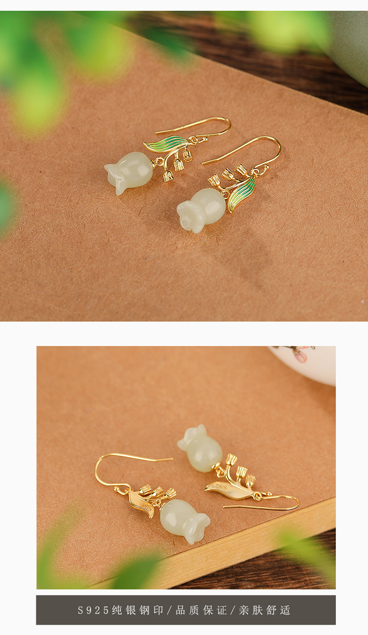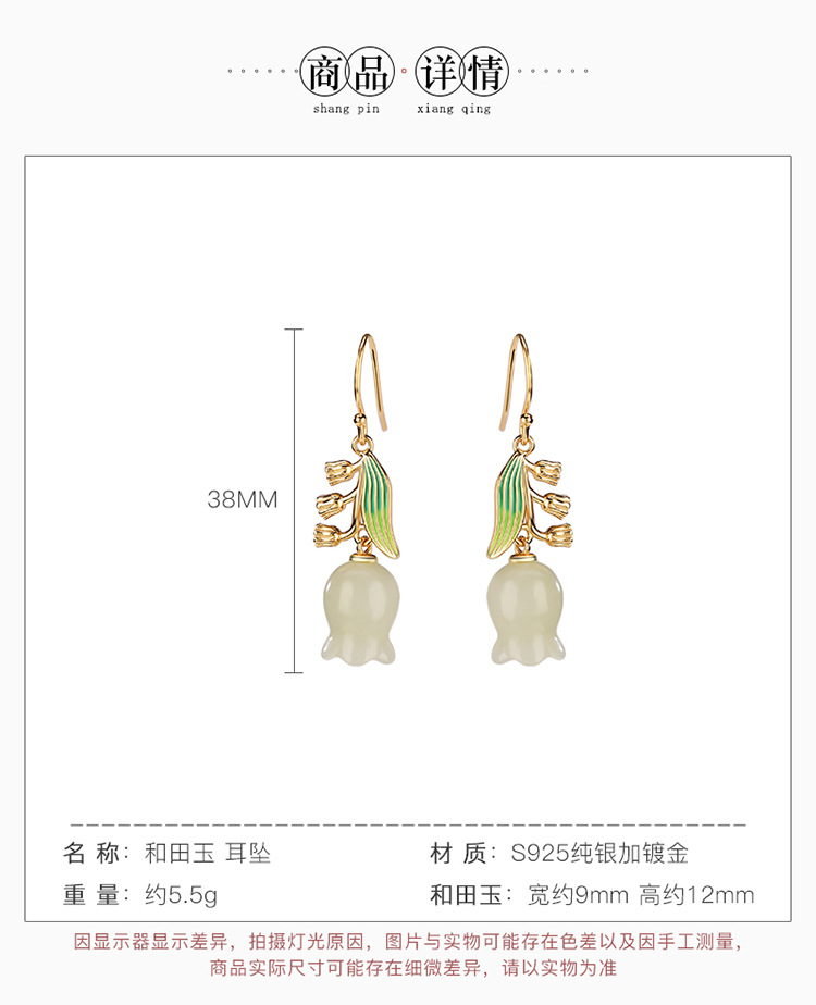 【铃兰花】S925银镀金和田玉珐琅耳钩【CW-EG01884】