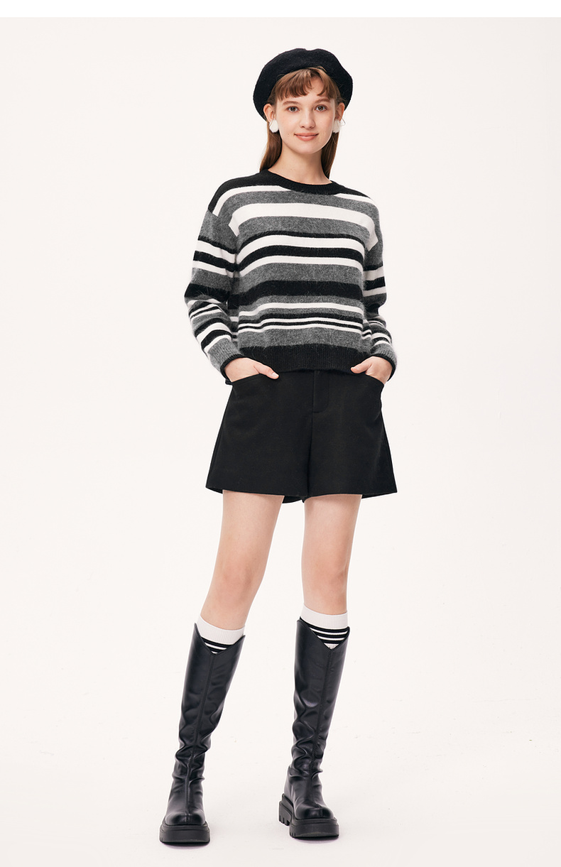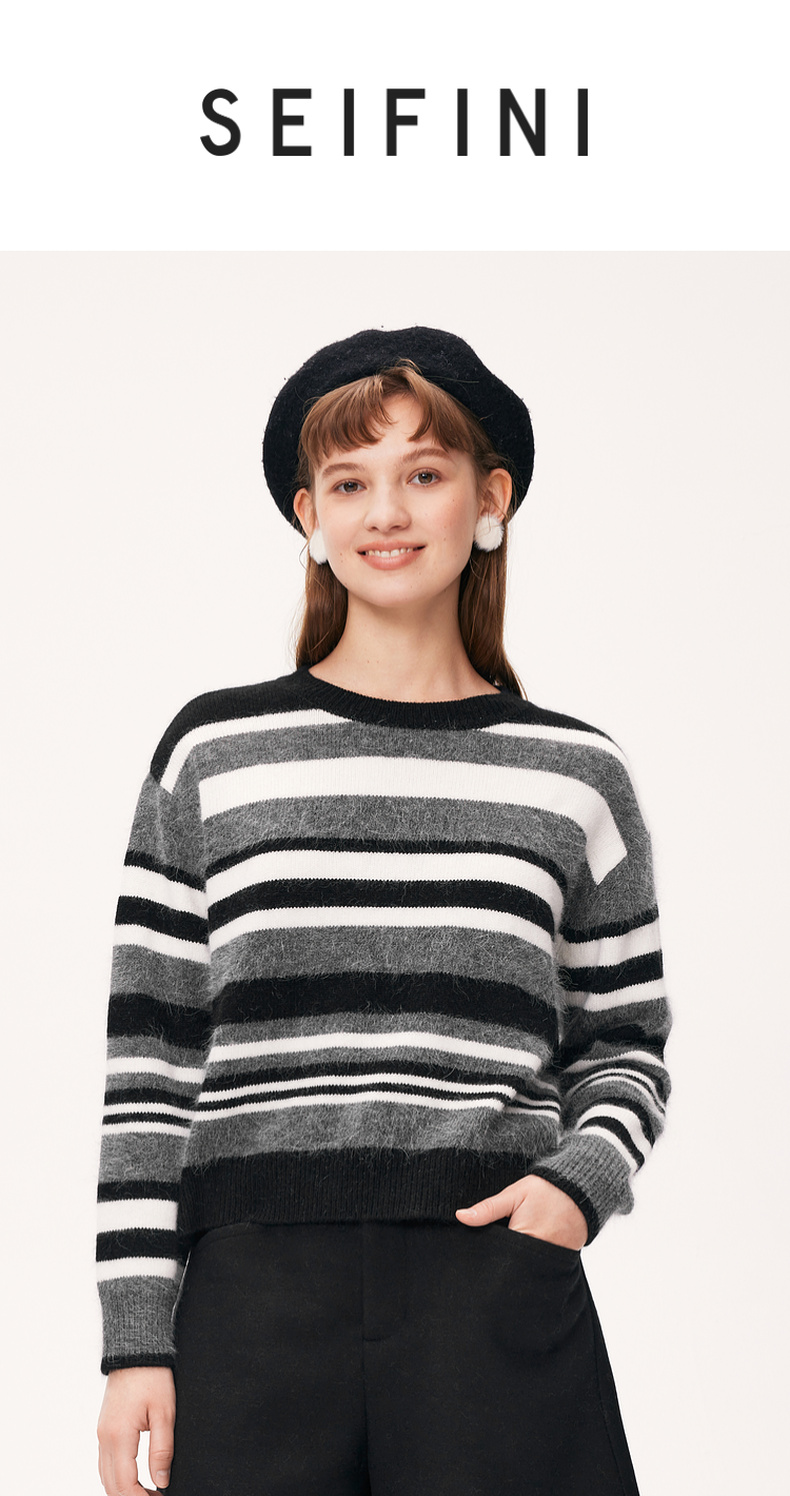 【严选】诗凡黎纯羊毛好运喵刺绣针织衫7G9132851
