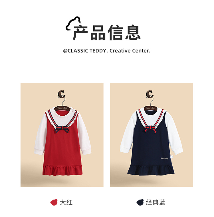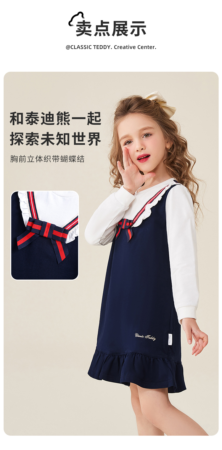 【90-140cm】女童春秋长袖连衣裙精典泰迪