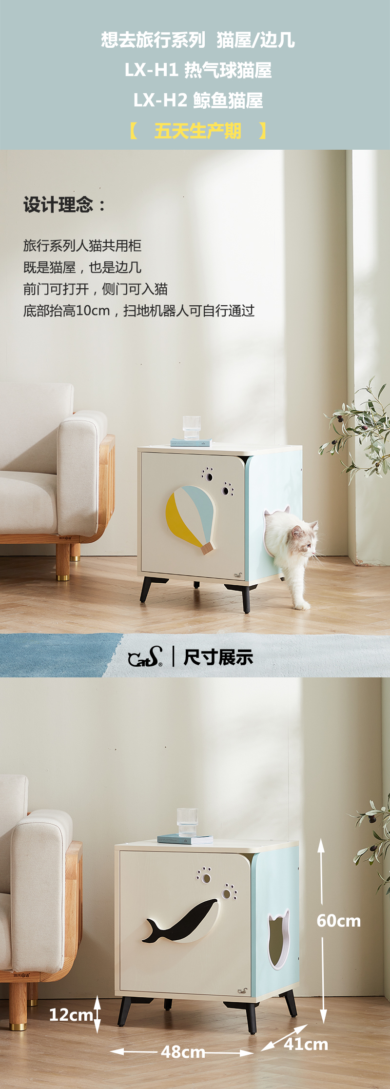 CatS猫家具 旅行系列猫屋 边几 人猫共用猫柜