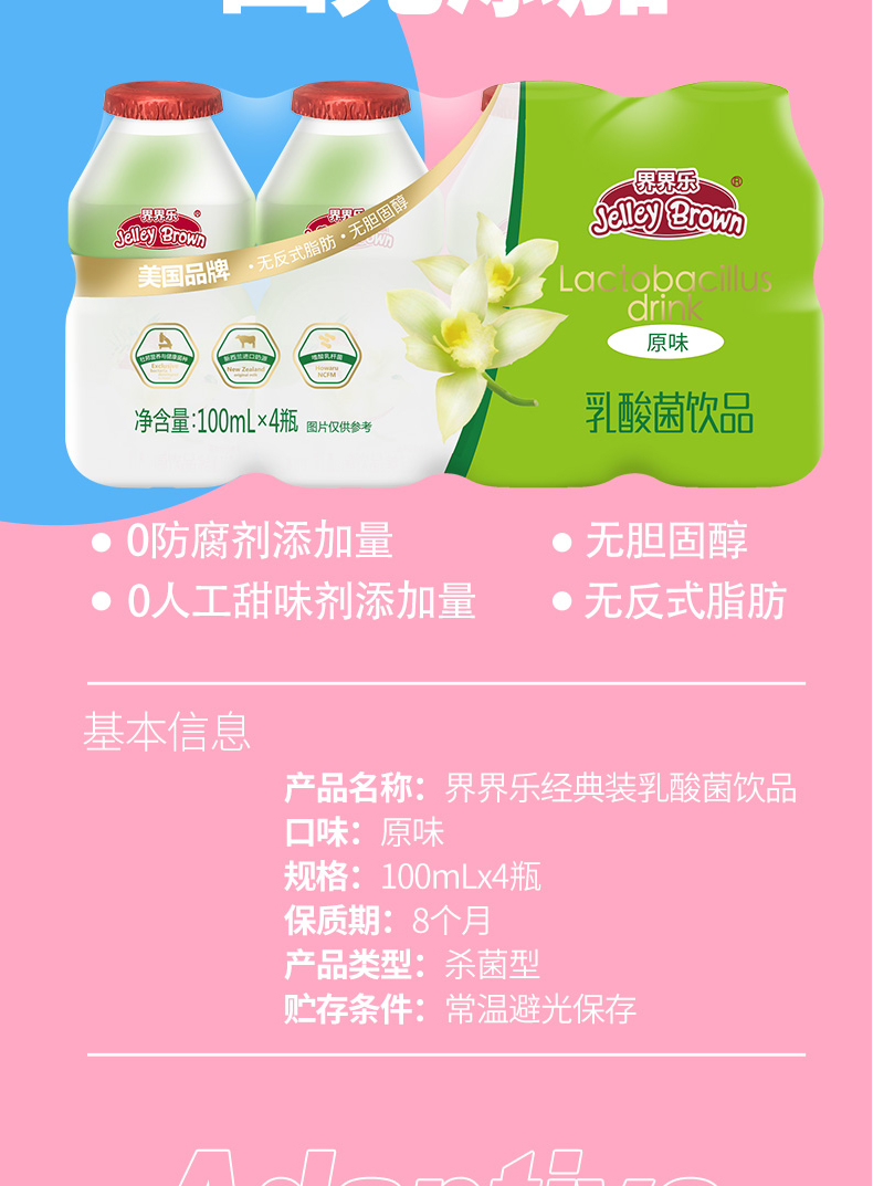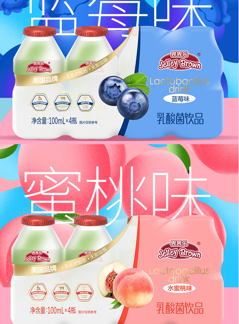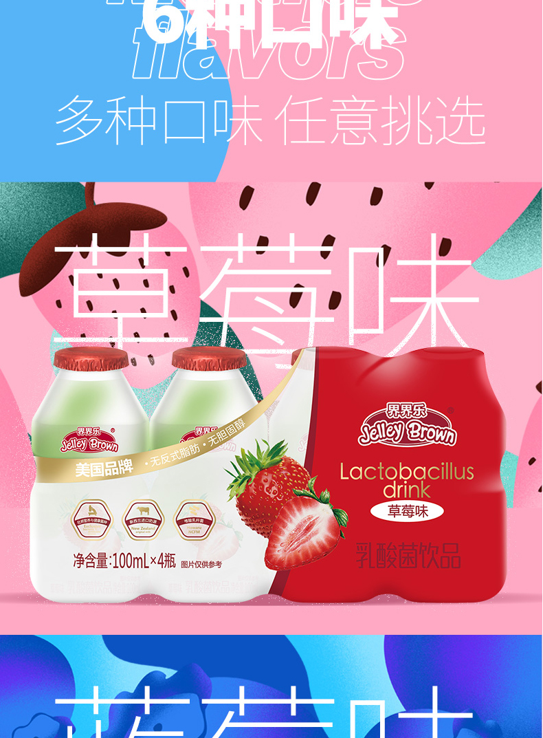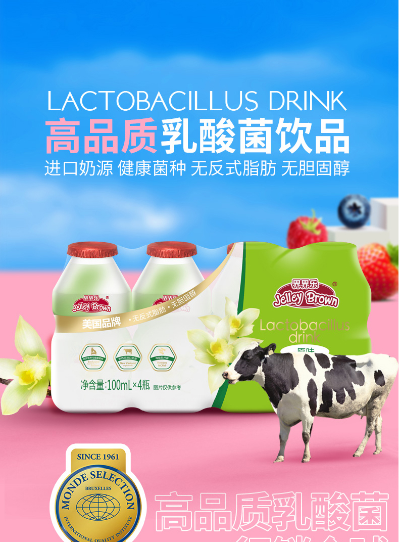 界界乐乳酸菌饮料多种口味儿童宝宝健康风味饮料100ml/瓶*4瓶 3y+