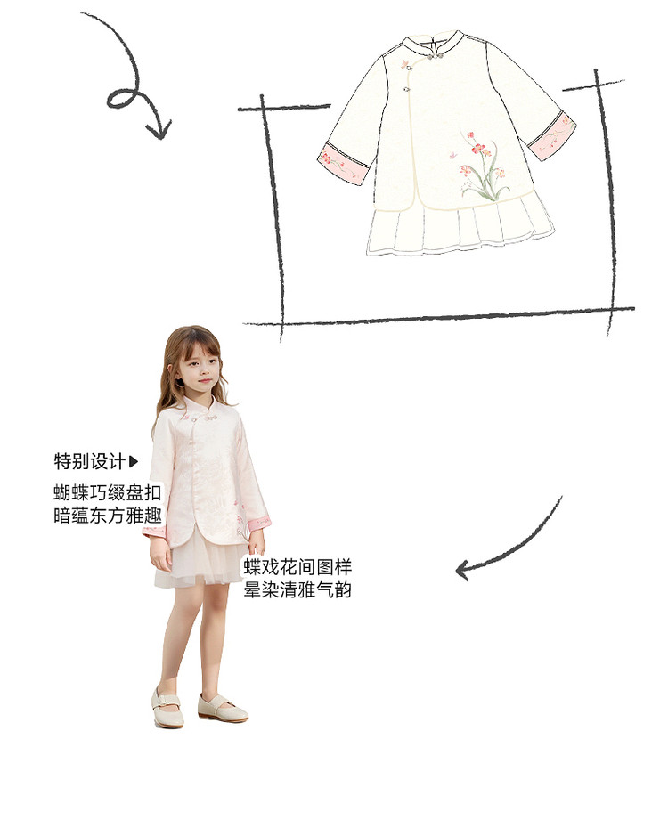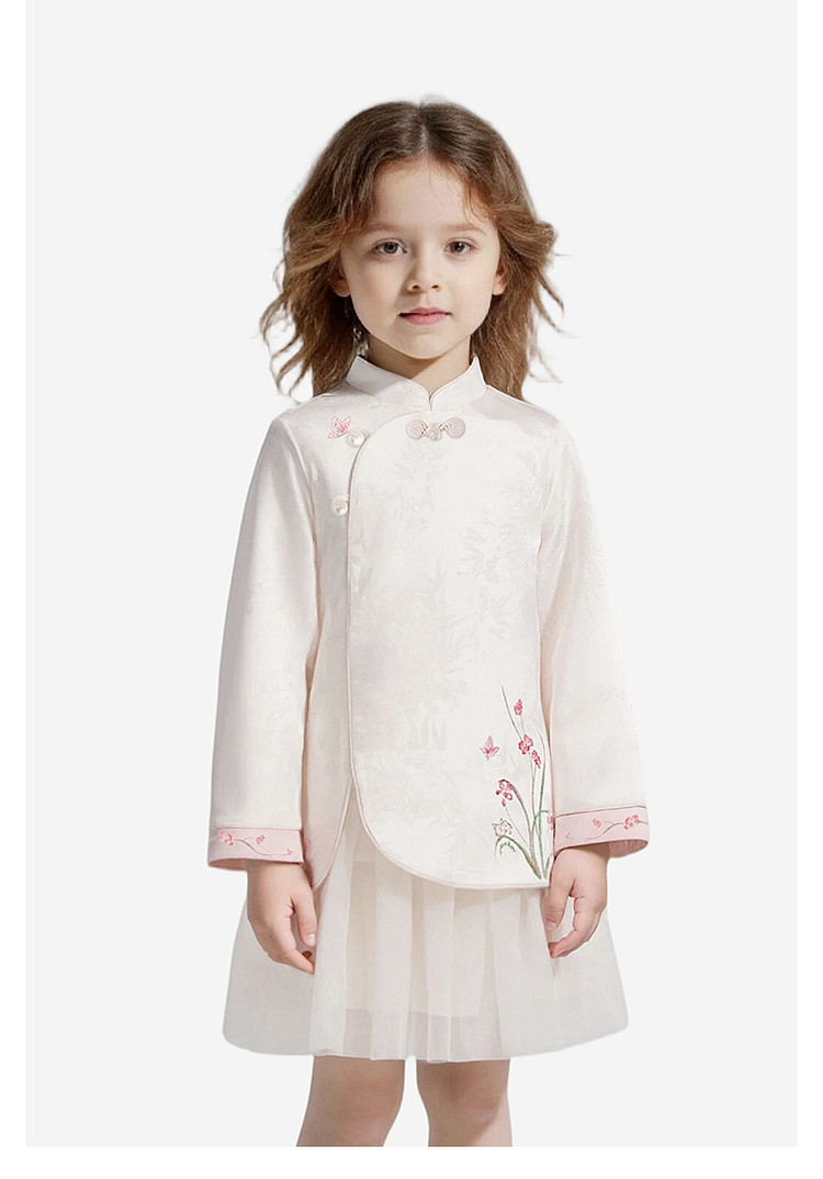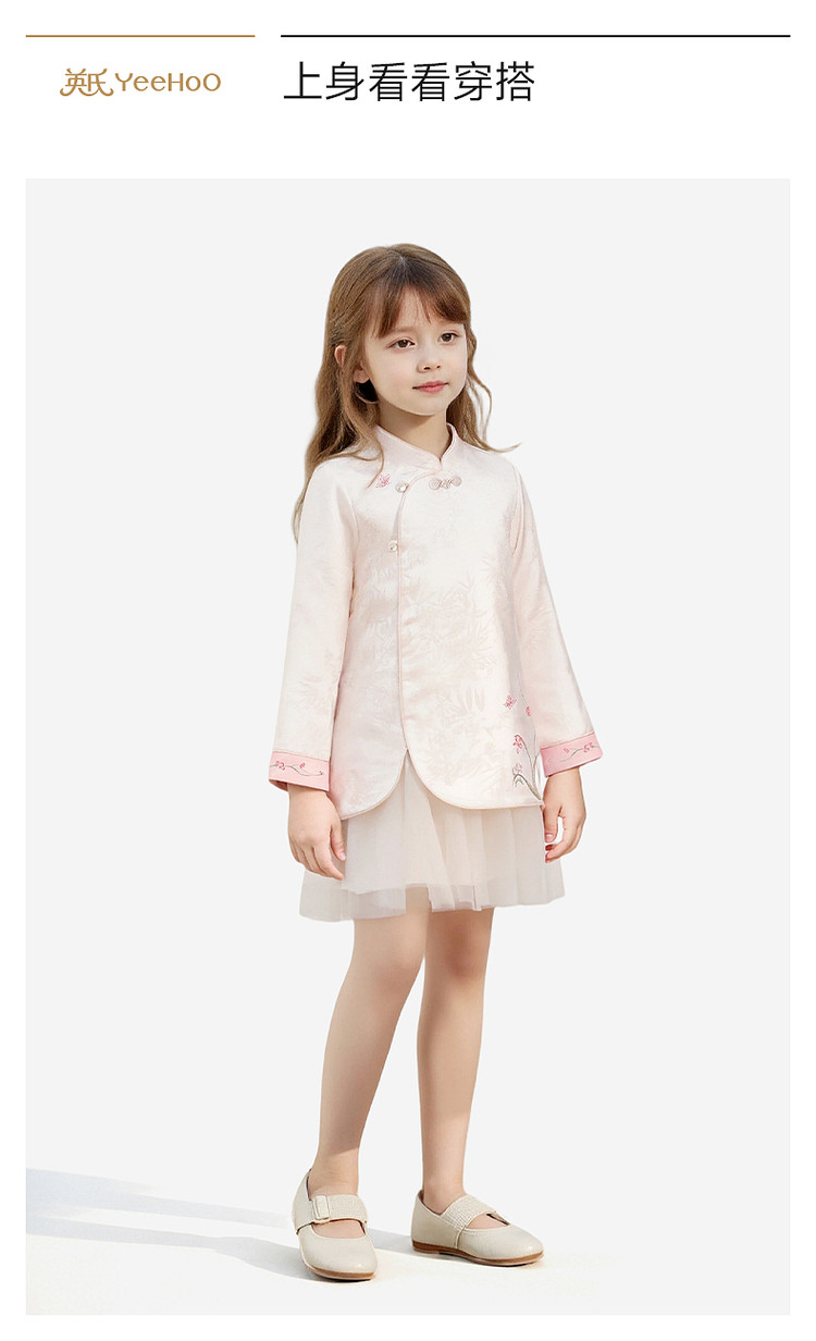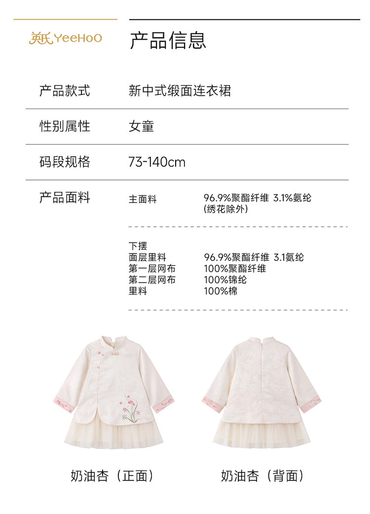 英氏女童连衣裙新中式长袖纱裙女宝宝礼服可爱新款YRLAJ1S002A