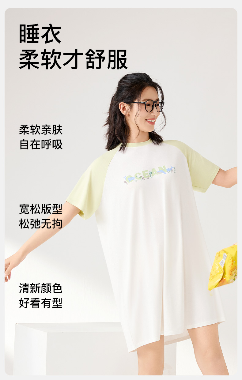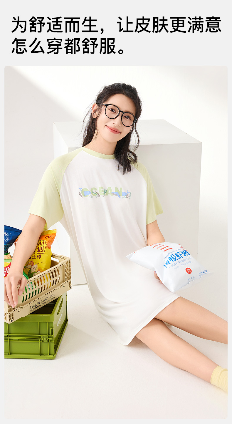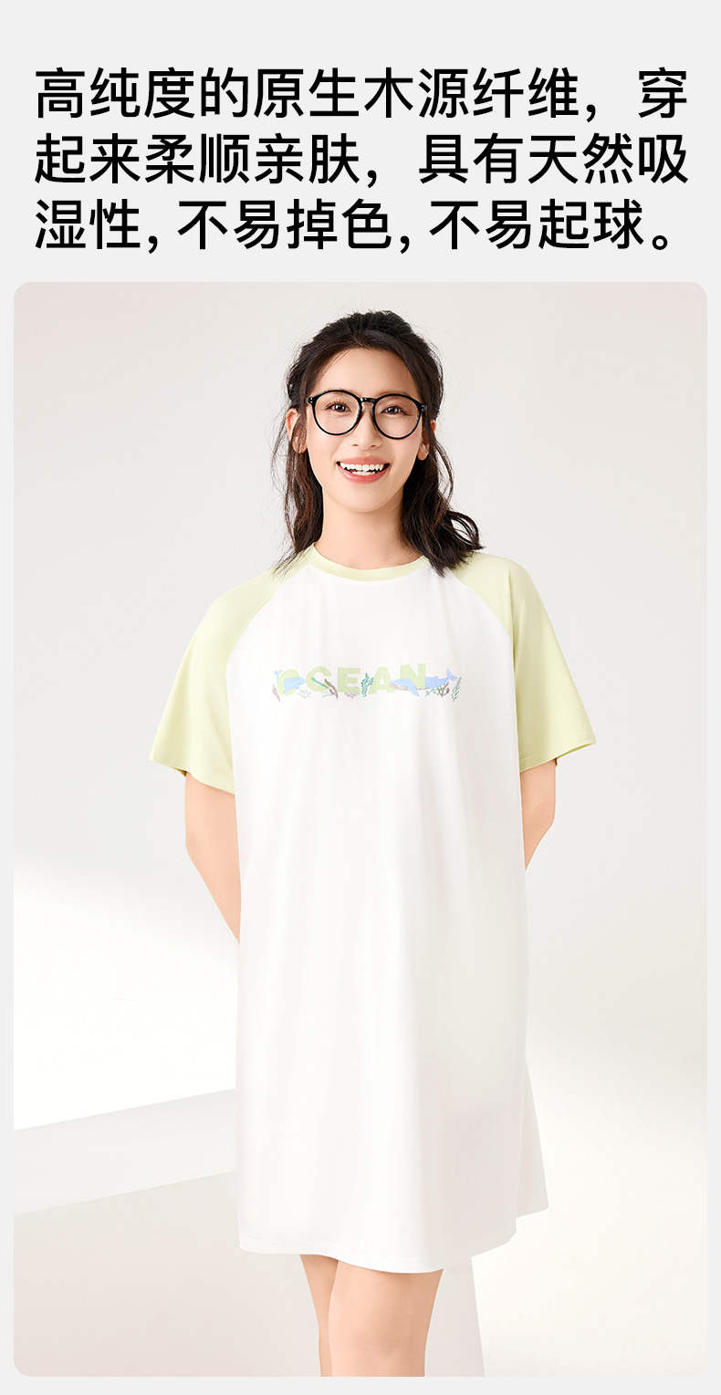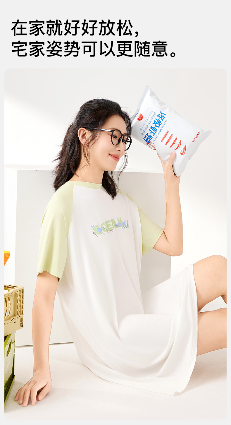 【优可丝系列】爱帝女士睡裙短袖夏季薄款冰丝连衣裙