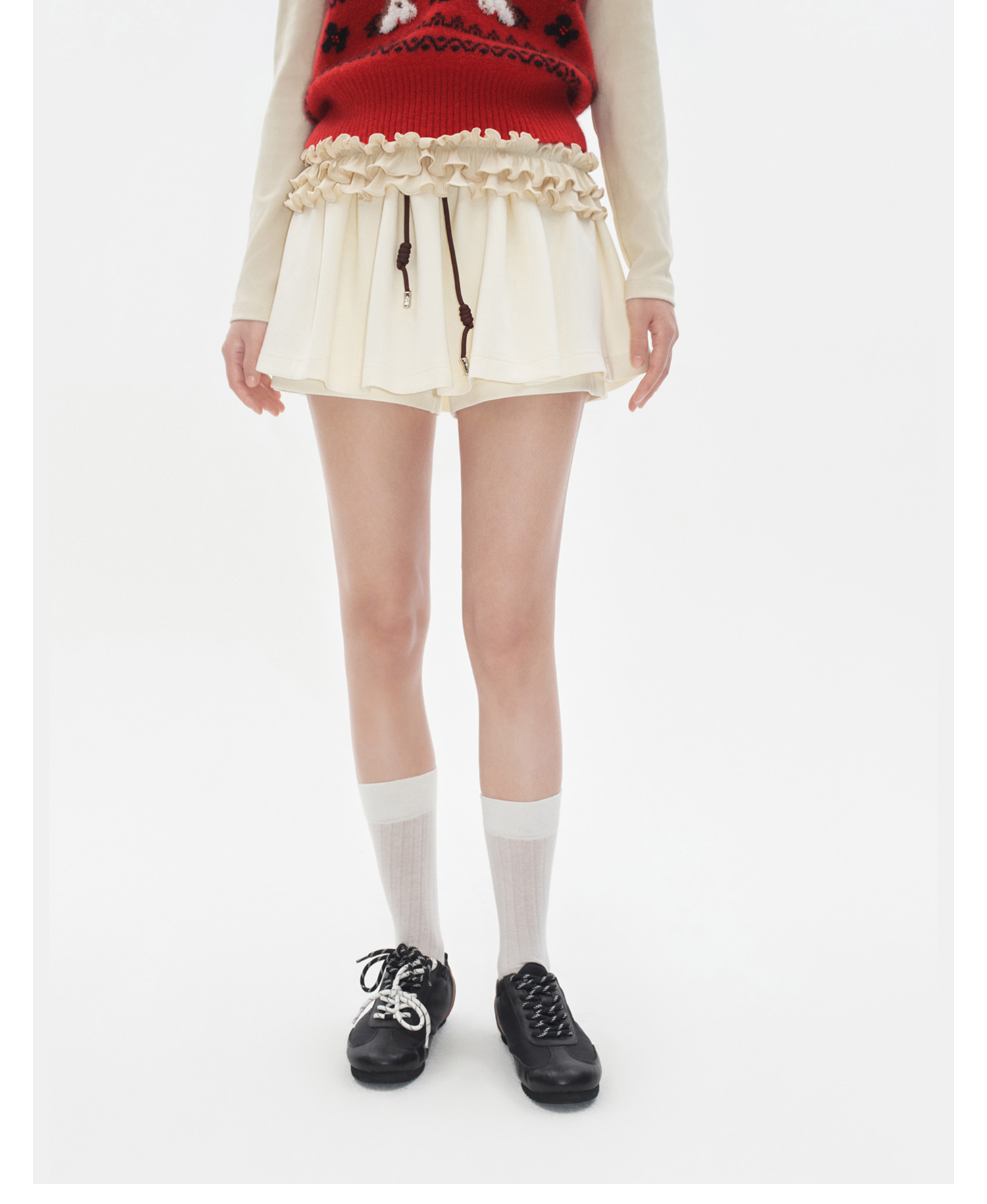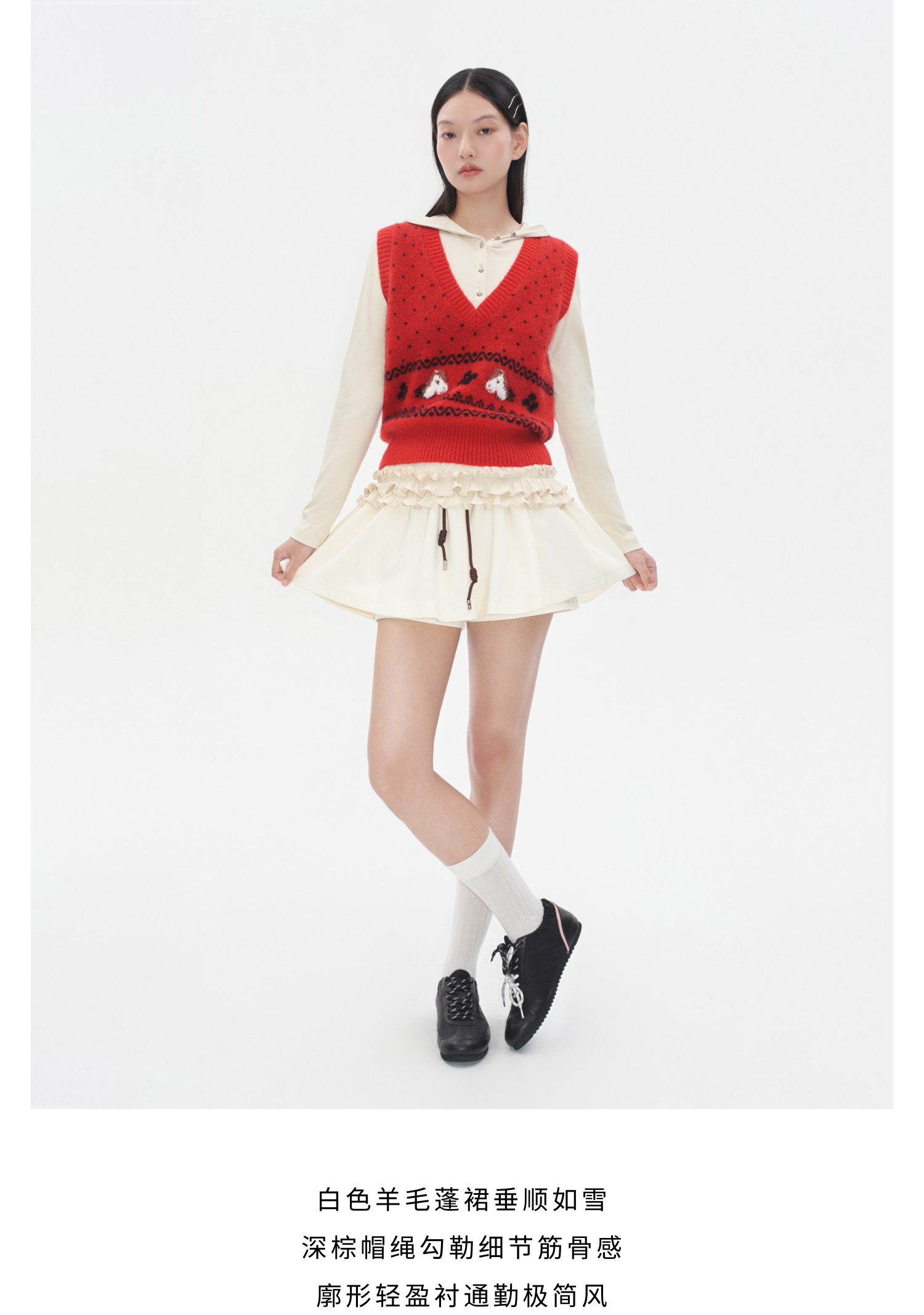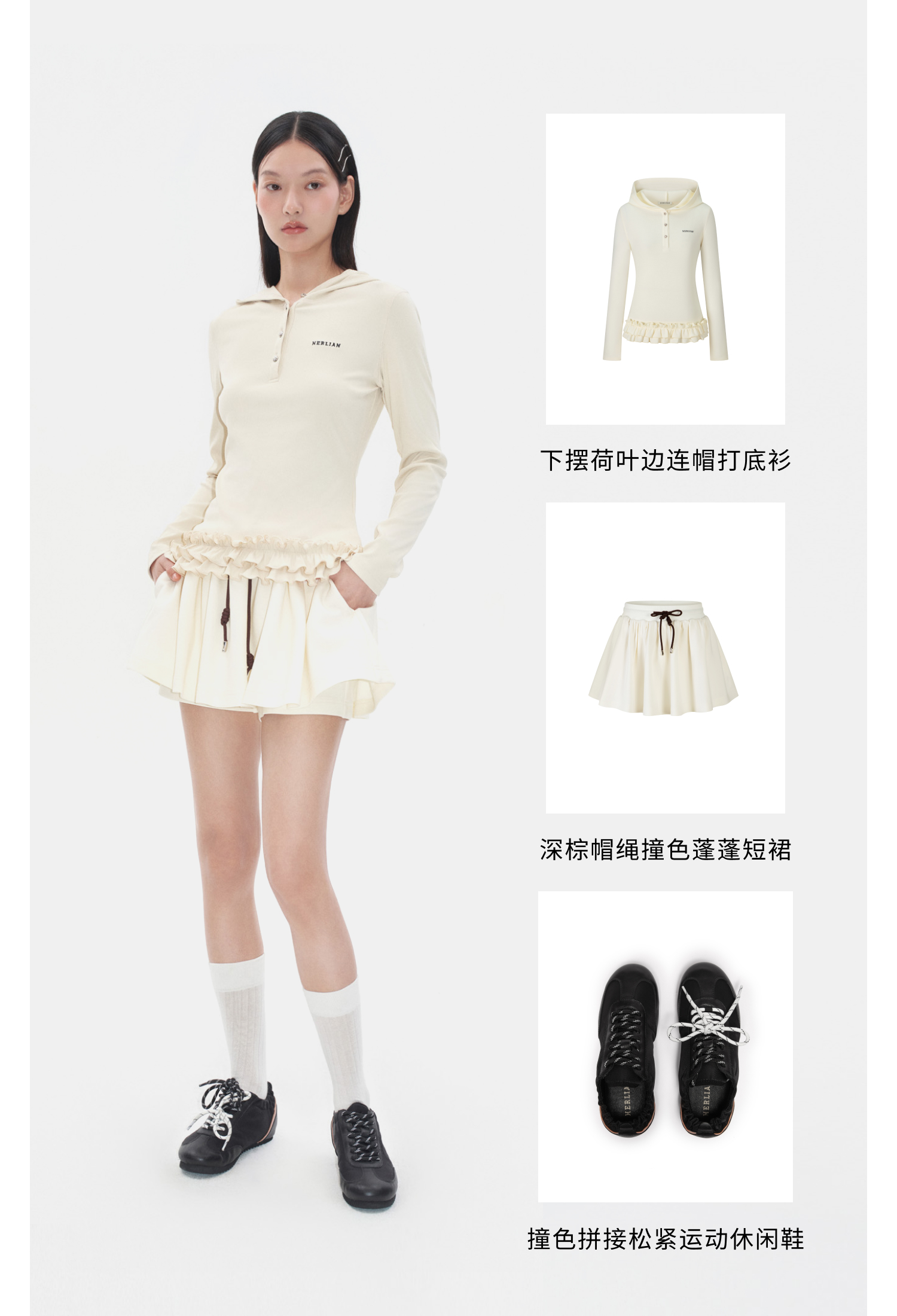 Herlian 2025冬季新品 深棕帽绳撞色蓬蓬短裙女士