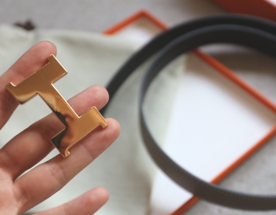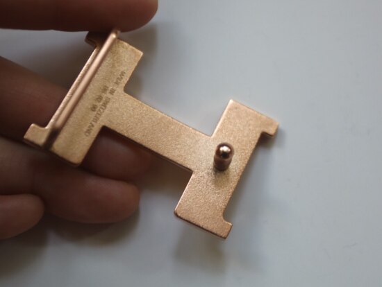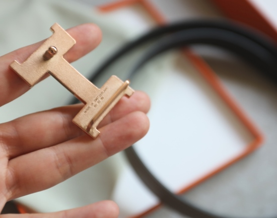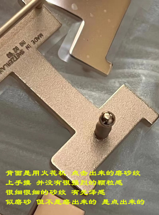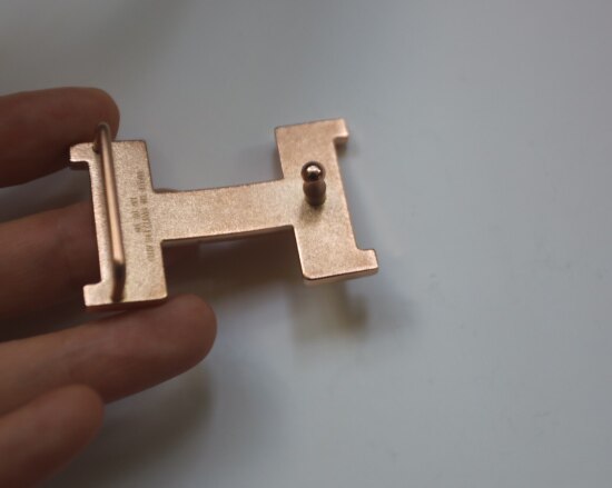 玫瑰金色的皮带扣头 大H的专属色 纯铜底胚 表层电镀工艺