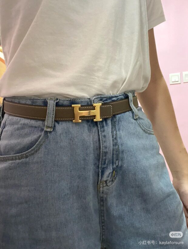 依旧是纯女款 双面用的 皮带宽度2.2cm 玫瑰金色的H扣头